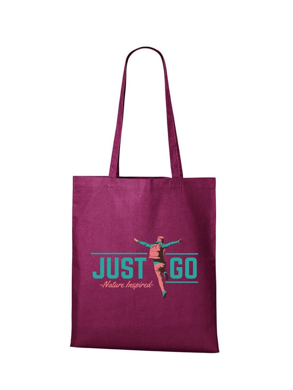 Provedení bavlněné tašky s potiskem Just go:
