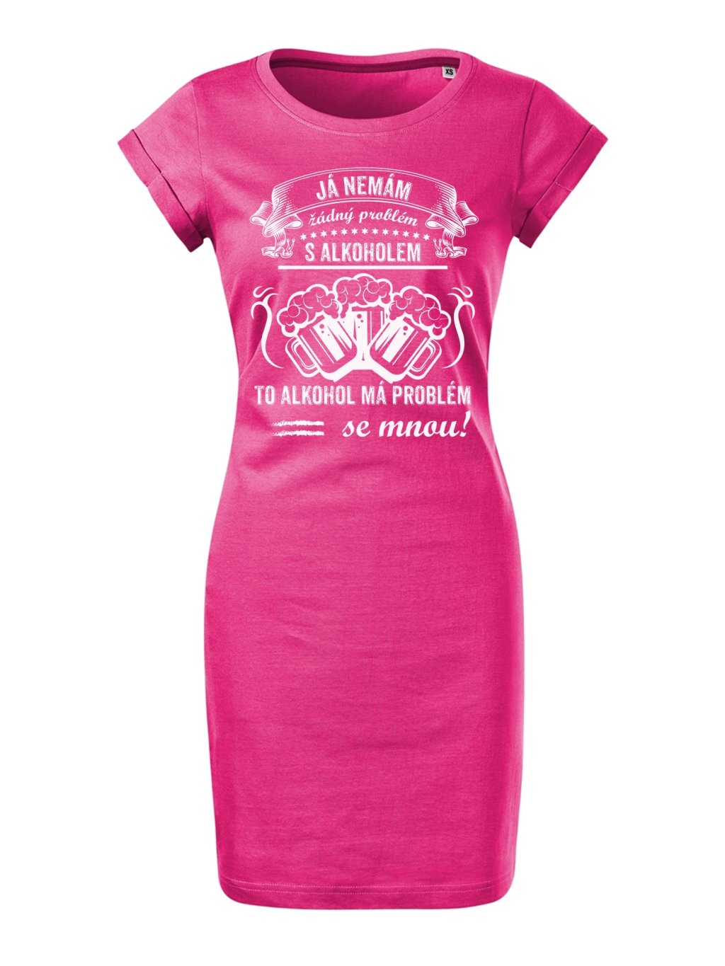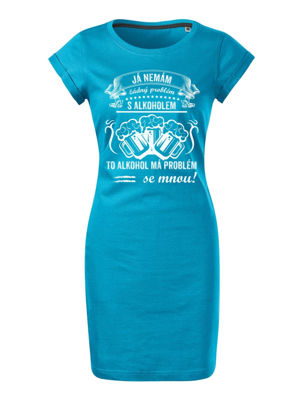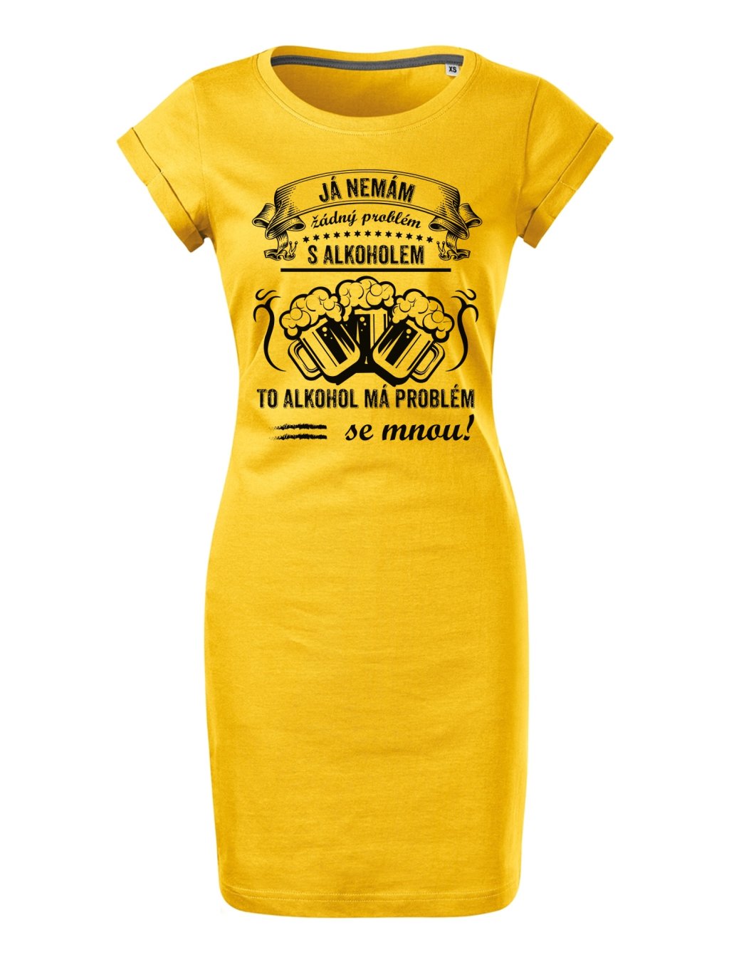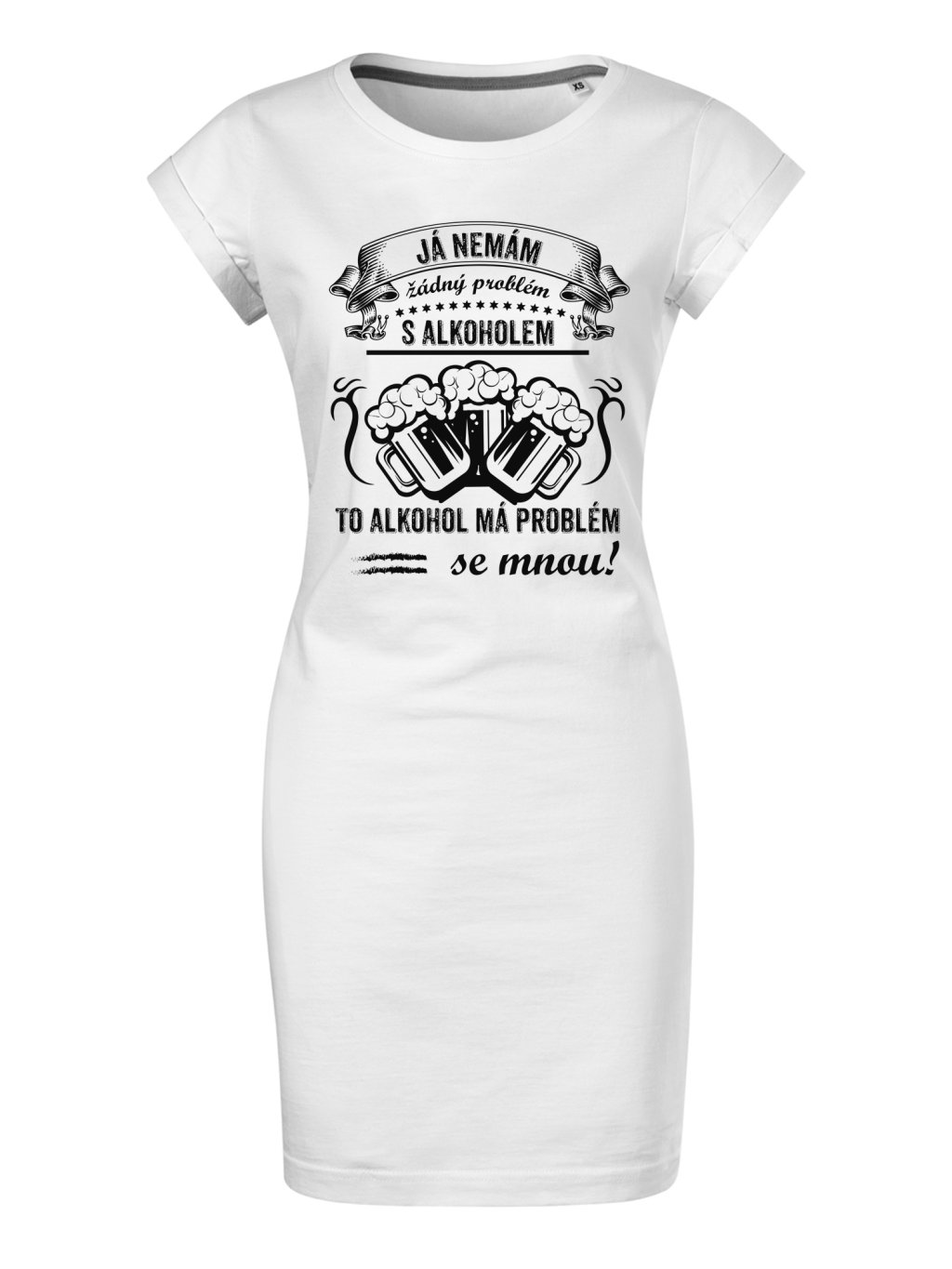 Letní šaty nad kolena s potiskem Nemám problém. Budete je chtít nosit stále. Skvělý dárek pro Vaše blízké. Tyto trendy šaty jsou vyrobeny ze 100% bavlny, díky čemuž jsou velice příjemné na dotek. Kvalitní digitální technologie potisku na šaty přináší dlouhou životnost a odolnost vytištěných motivů.