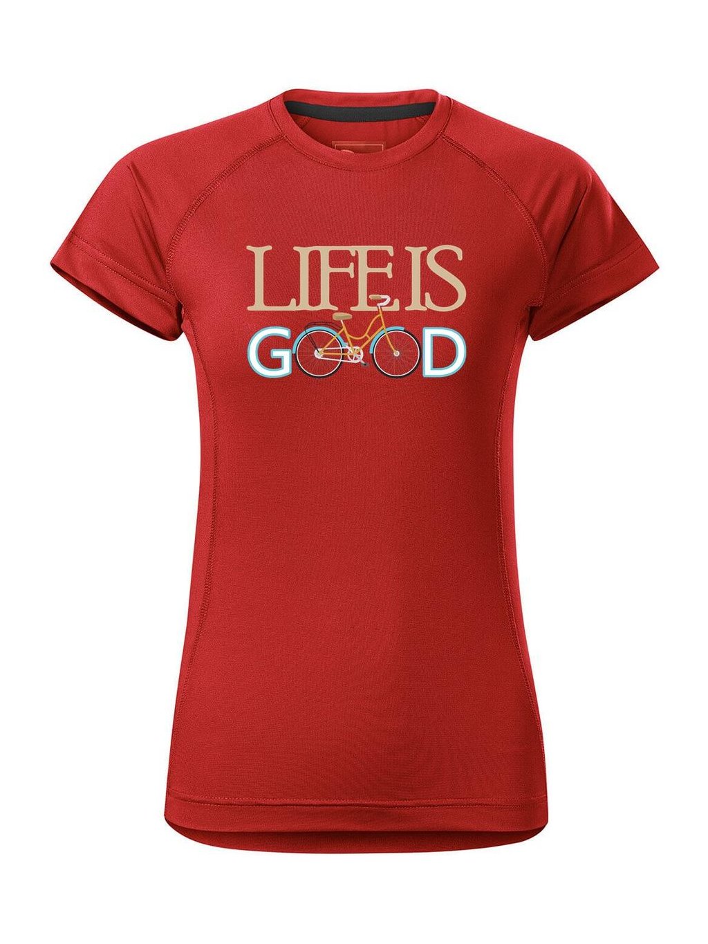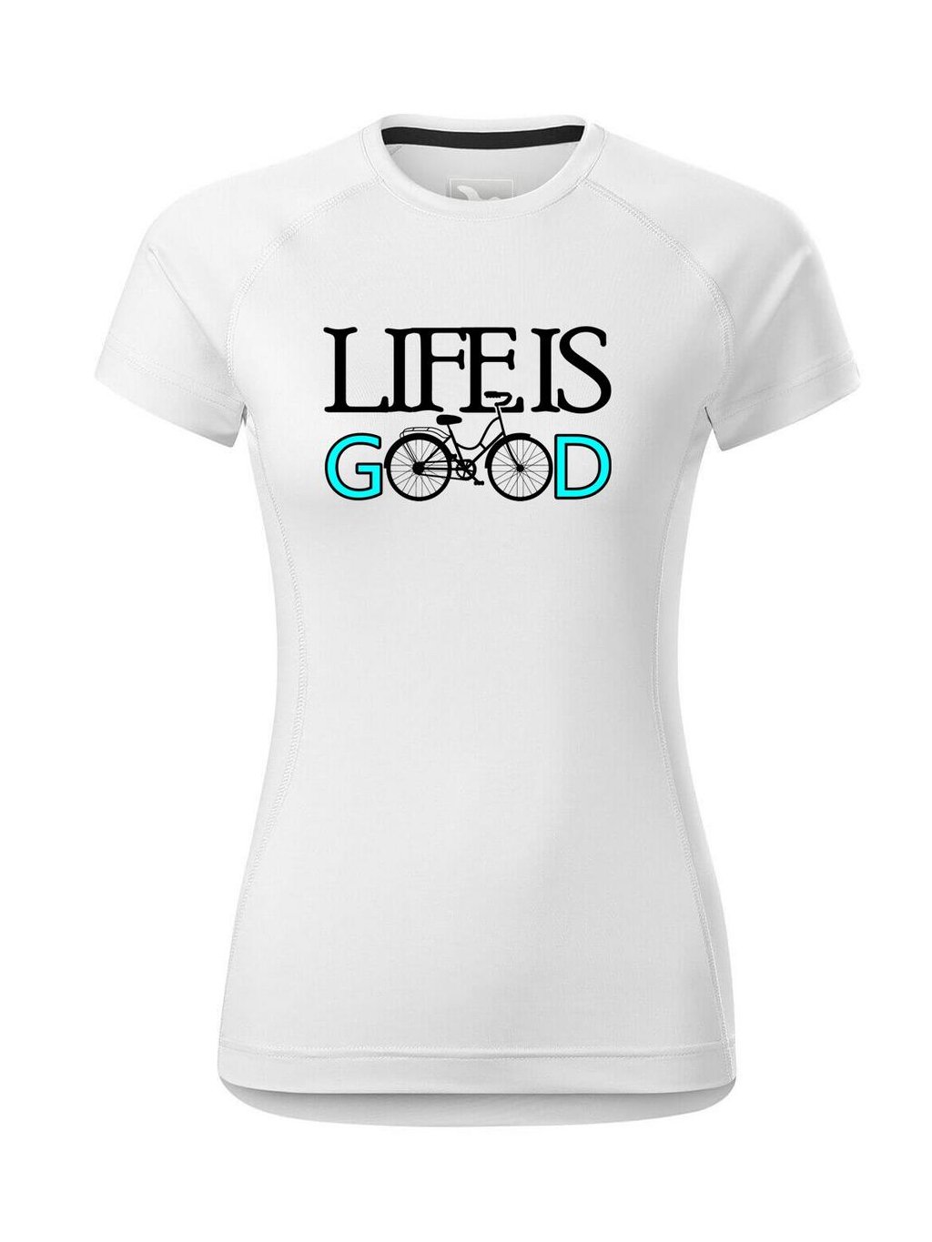 Provedení dámského funkčního trička s potiskem Life is good: