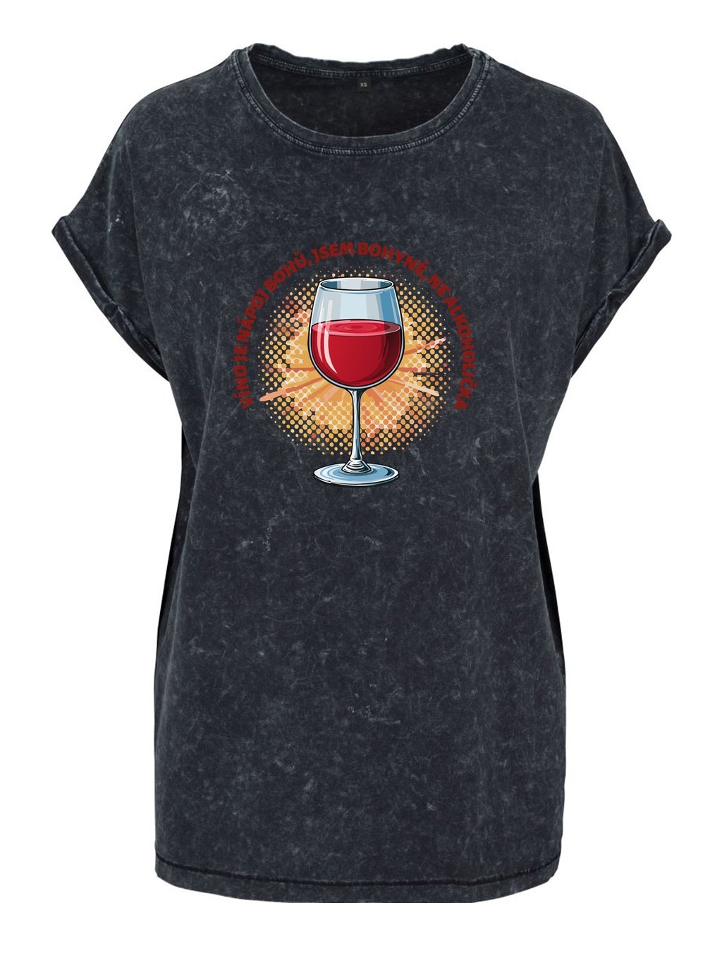 Dámské tričko s potiskem Víno nápoj bohů ve volnějším, delším střihu poskytuje komfort a módní vzhled. Díky spadlým ramenům a unikátní seprané úpravě má moderní a uvolněný styl. Skvěle se hodí pro městské aktivity, ať už na procházky, nákupy nebo setkání s kamarády. Je opatřeno kvalitním a trvanlivým potiskem, čímž se stává výjimečným kouskem pro různé příležitosti. Toto tričko s potiskem Víno nápoj bohů bude dokonalým a jedinečným kouskem ve vašem šatníku.