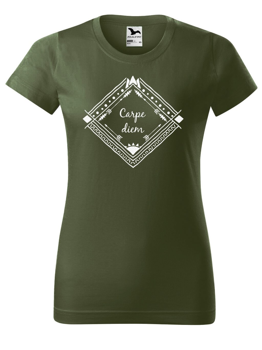 Vtipné dámské tričko s potiskem Carpe diem khaki M