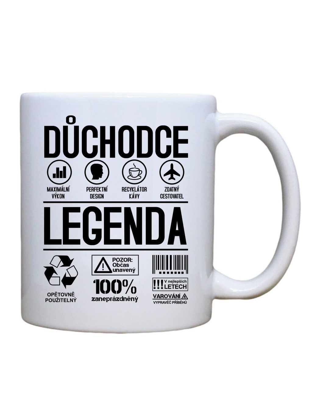 MAXI keramický hrnek o objemu 550 ml s potiskem Důchodce legenda je ideální volbou pro každého, kdo si rád vychutná svůj oblíbený horký nápoj ve velkém stylu. Tento hrnek poskytne dostatek prostoru pro dlouhé hodiny příjemných okamžiků s čajem nebo kávou a stane se nedílnou součástí vaší denní rutiny.