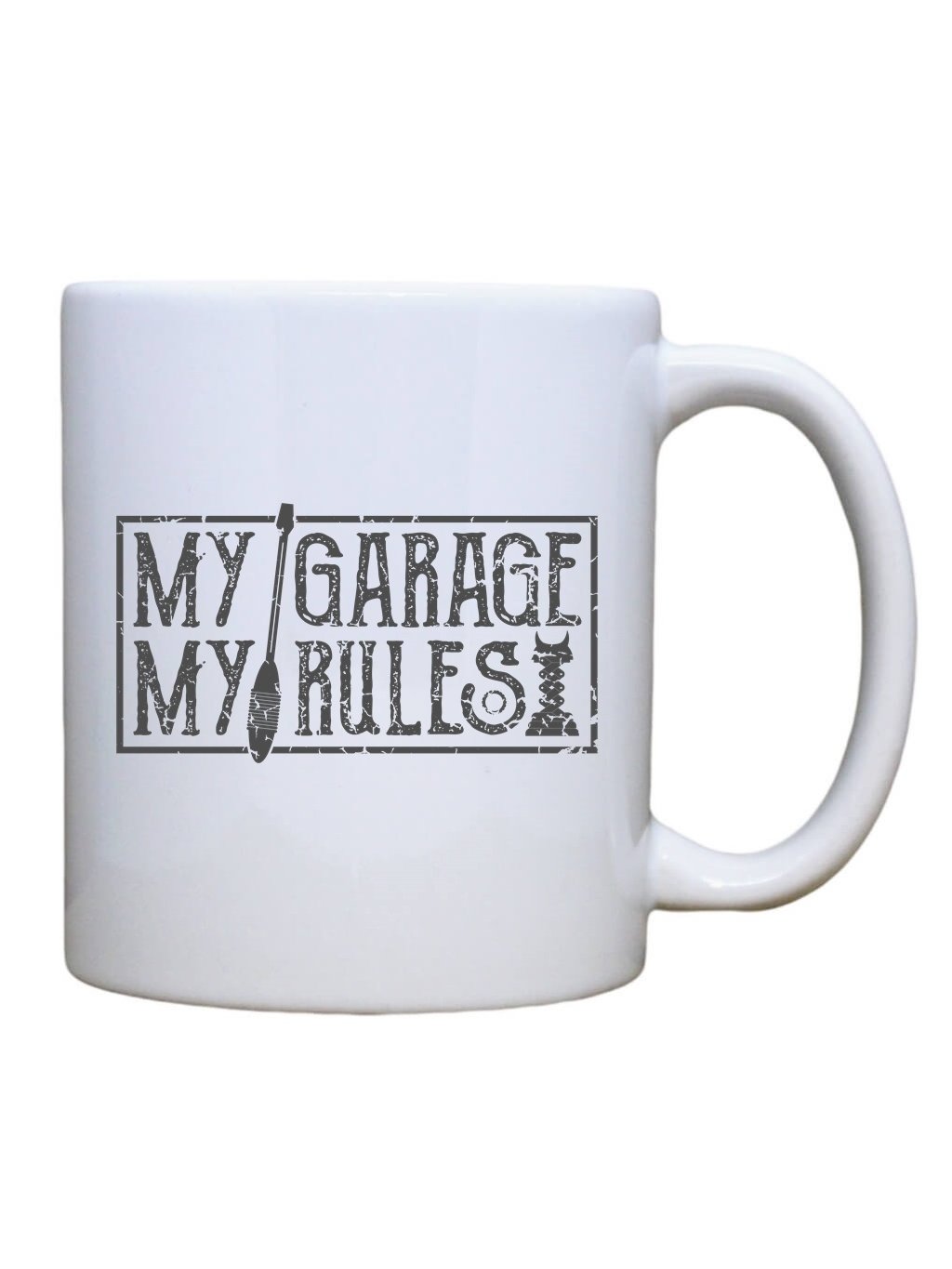 MAXI keramický hrnek o objemu 550 ml s potiskem Má garáž má pravidla je ideální volbou pro každého, kdo si rád vychutná svůj oblíbený horký nápoj ve velkém stylu. Tento hrnek poskytne dostatek prostoru pro dlouhé hodiny příjemných okamžiků s čajem nebo kávou a stane se nedílnou součástí vaší denní rutiny.