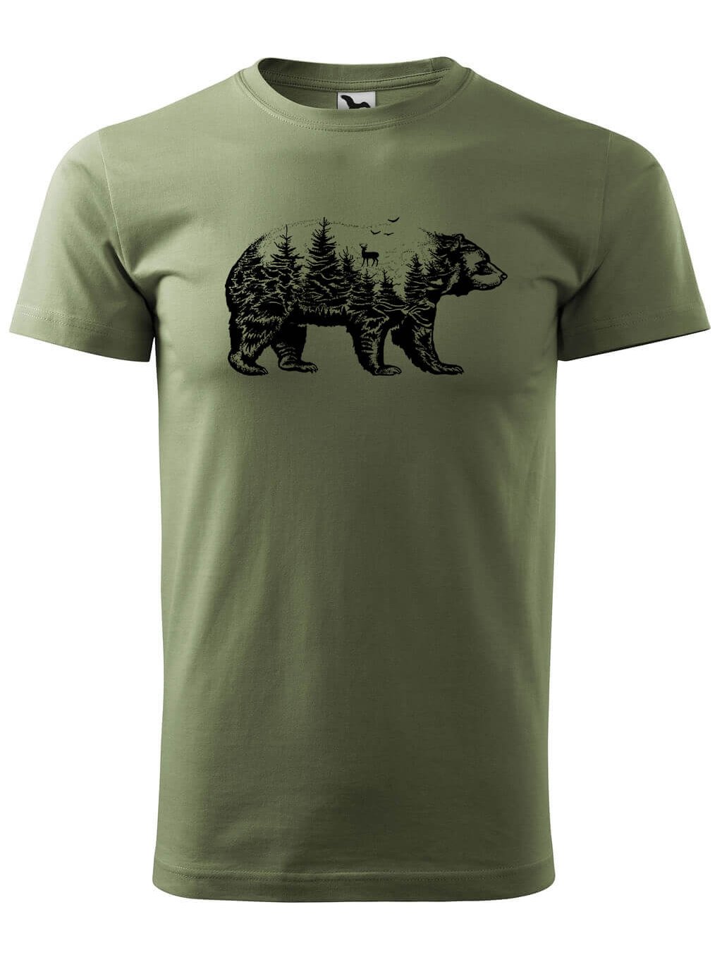 Provedení pánského bavlněného trička s potiskem Medvěd khaki M: