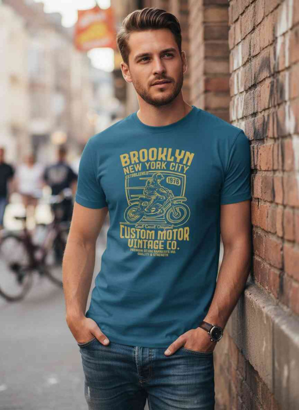 Provedení pánského bavlněného trička s potiskem Custom motor: