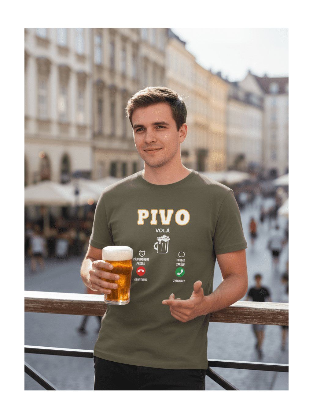 Provedení pánského bavlněného trička s potiskem Pivo volá: