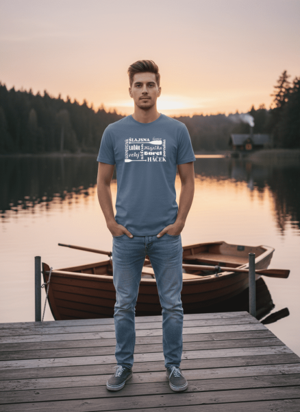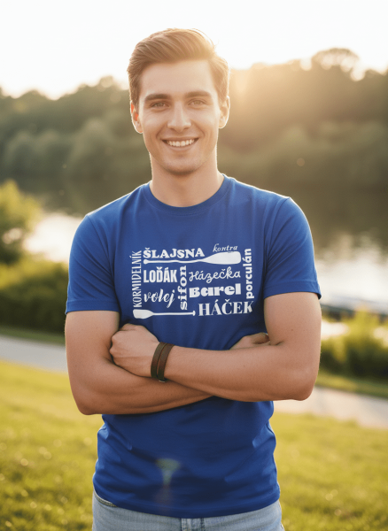 Provedení pánského bavlněného trička s potiskem Vodácká hantýrka: