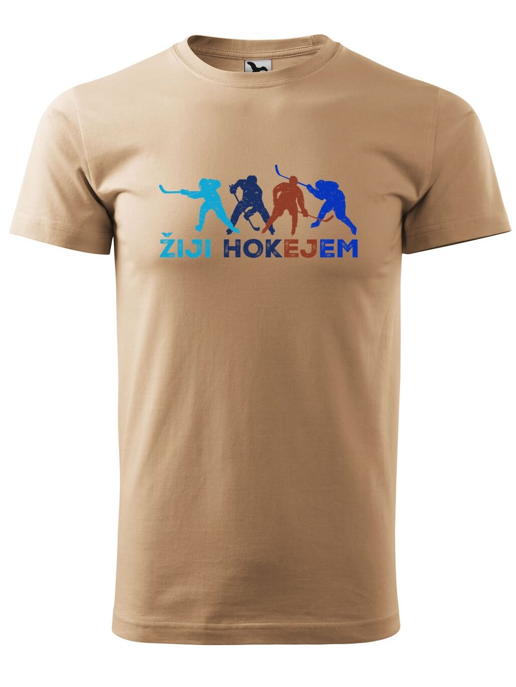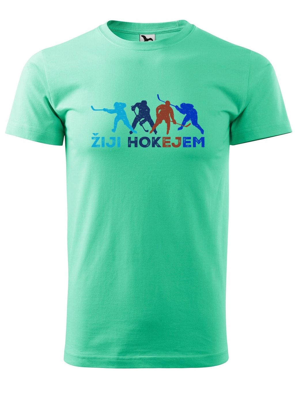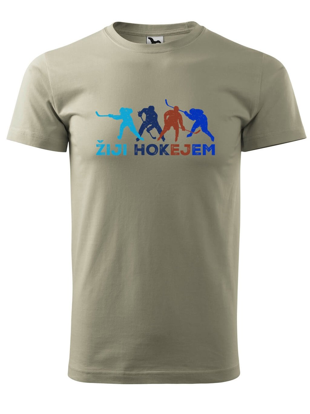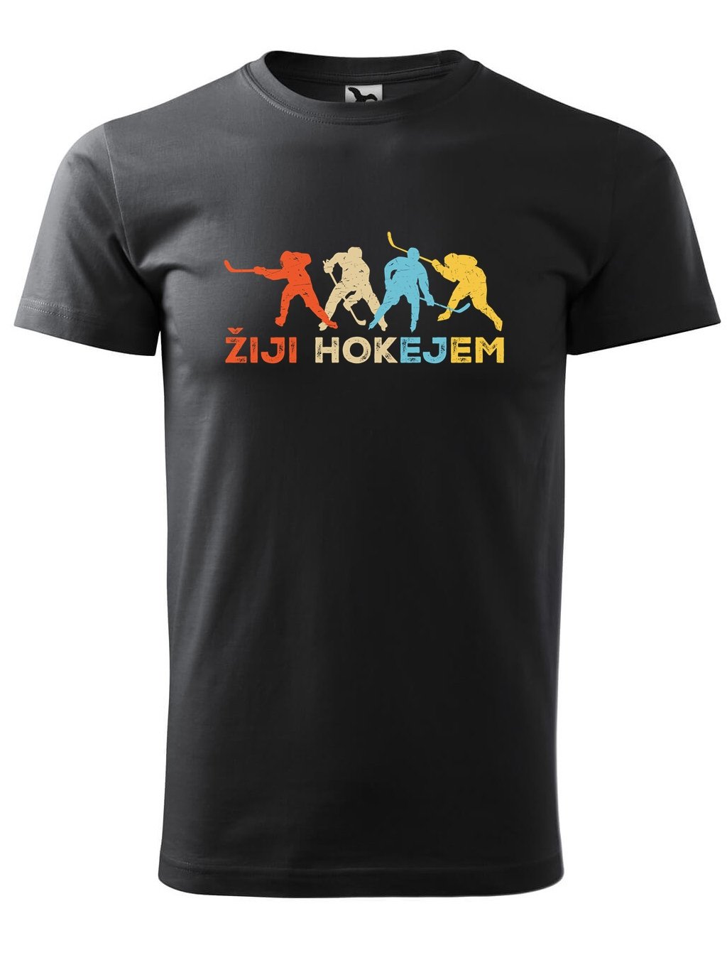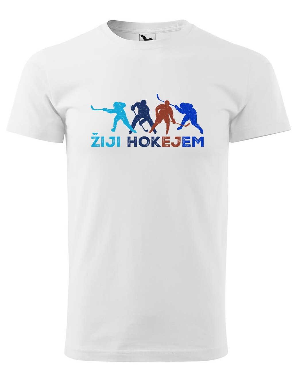 Provedení pánského bavlněného trička s potiskem Žiji hokejem:
