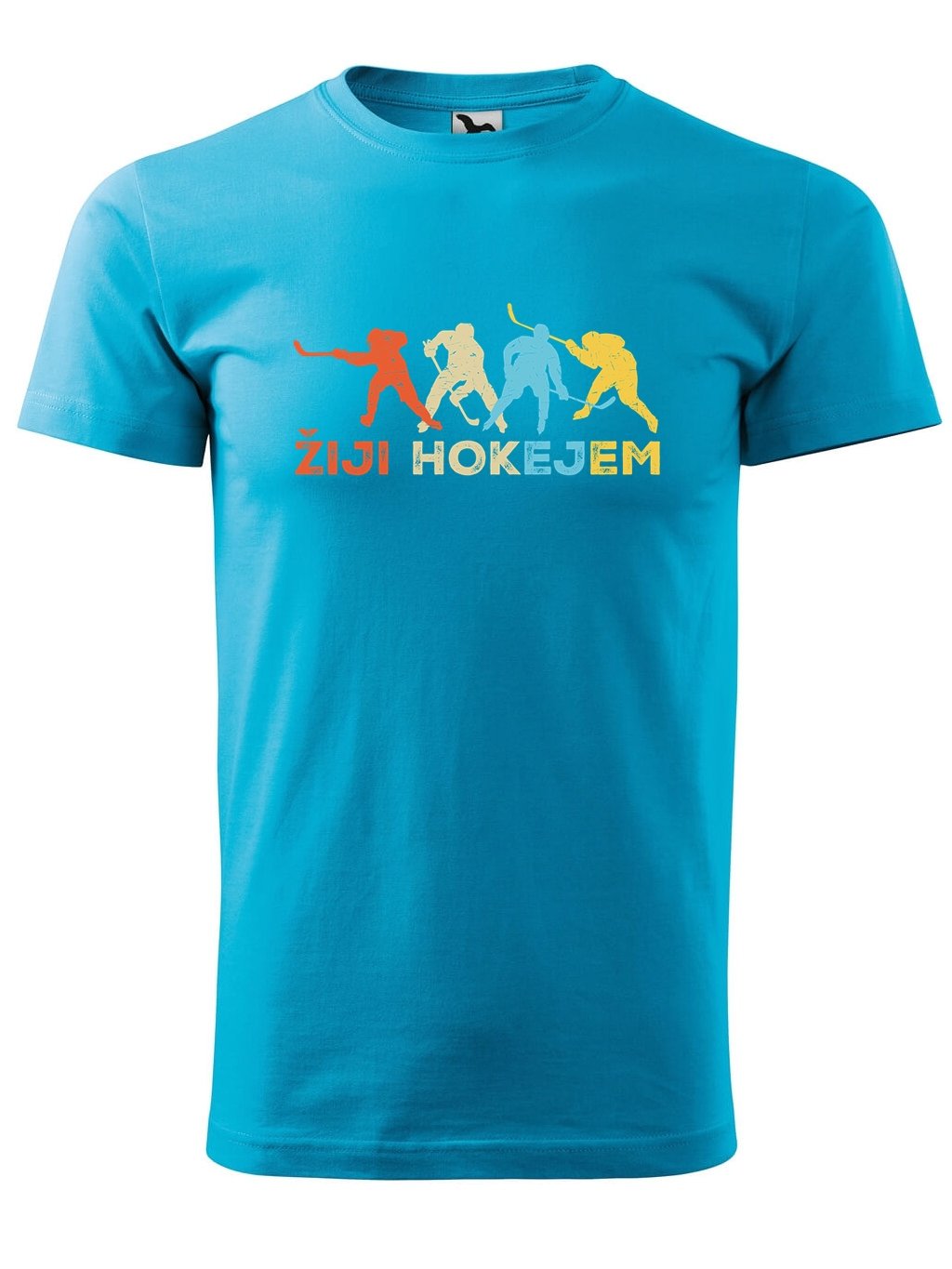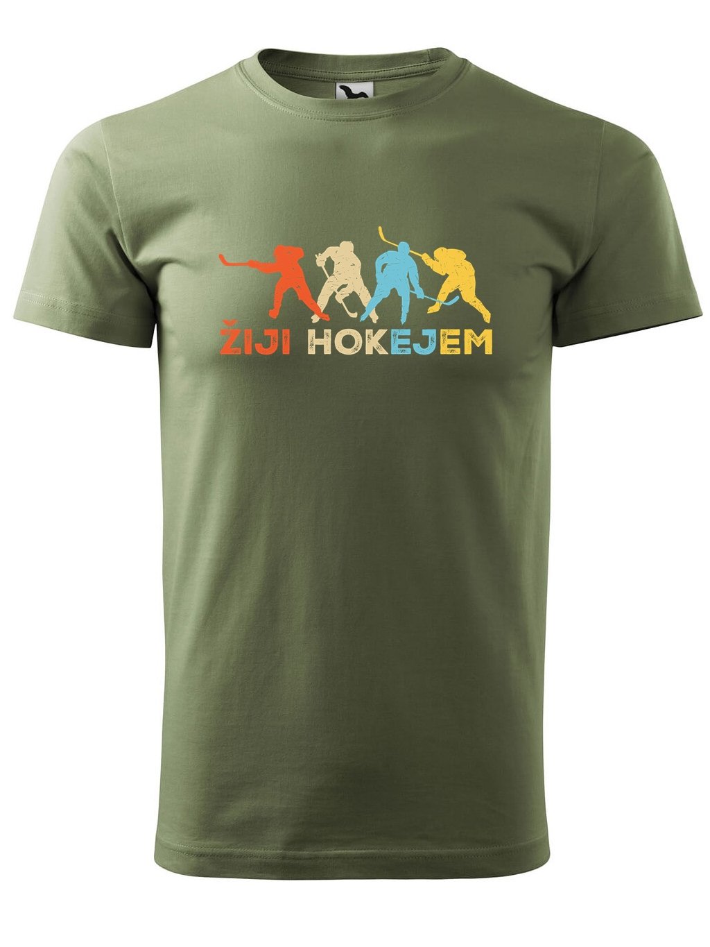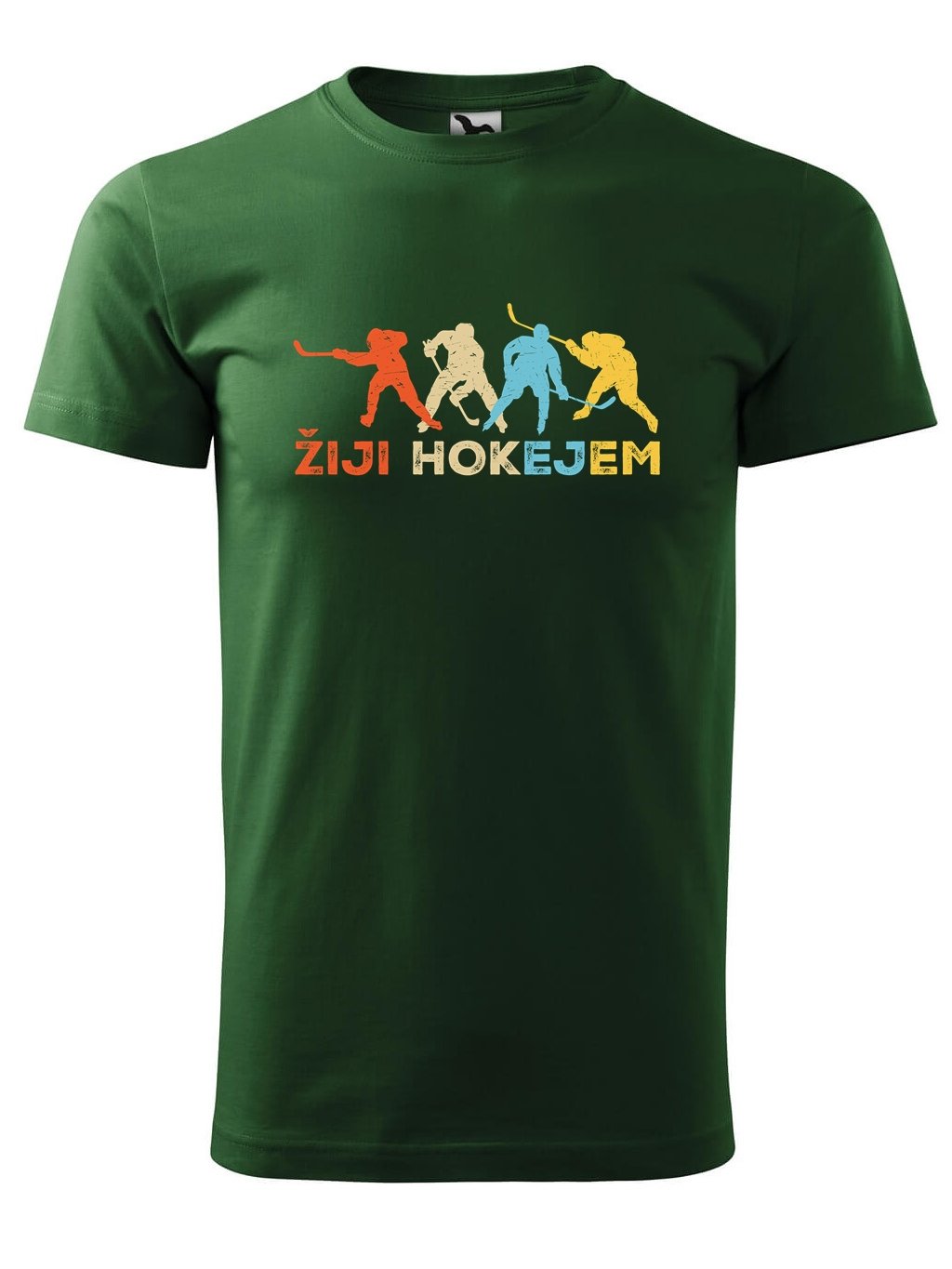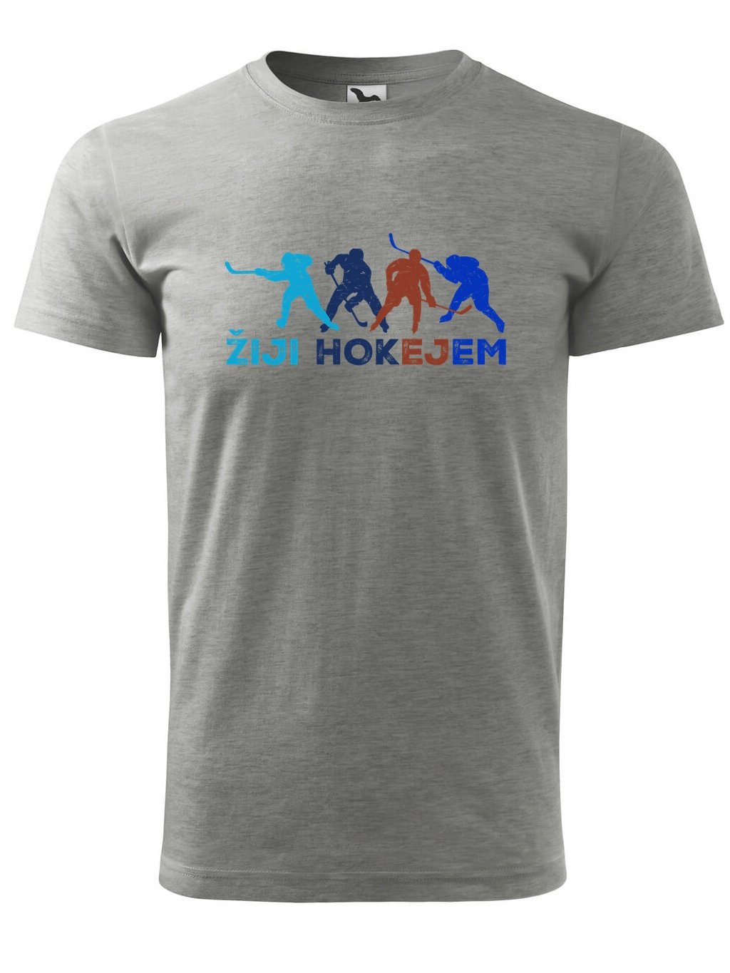 Provedení pánského bavlněného trička s potiskem Žiji hokejem: