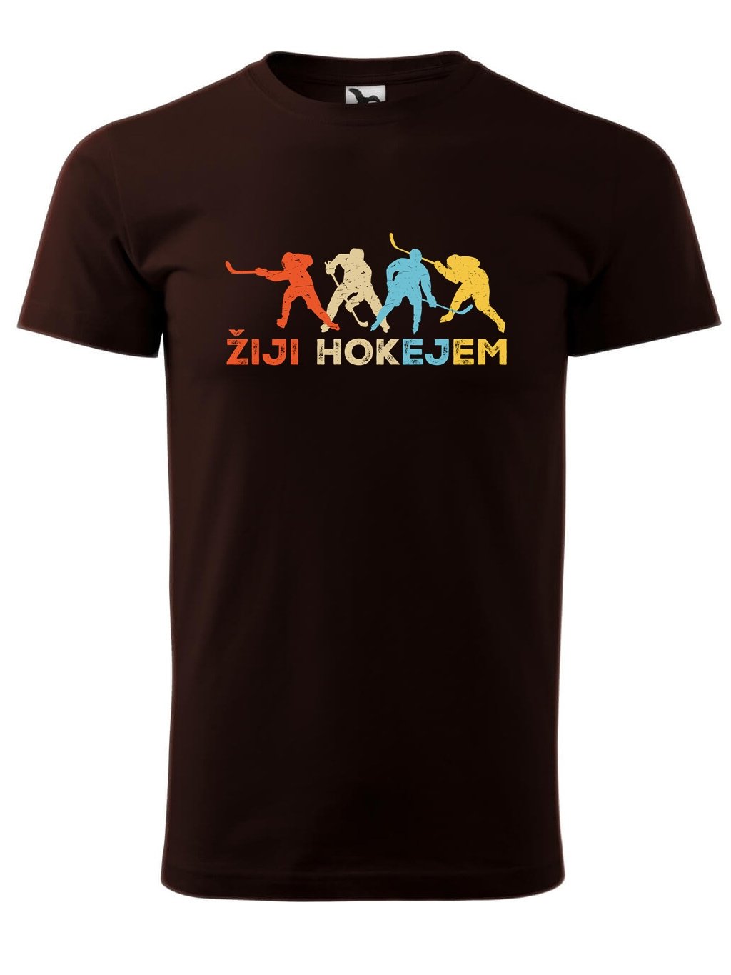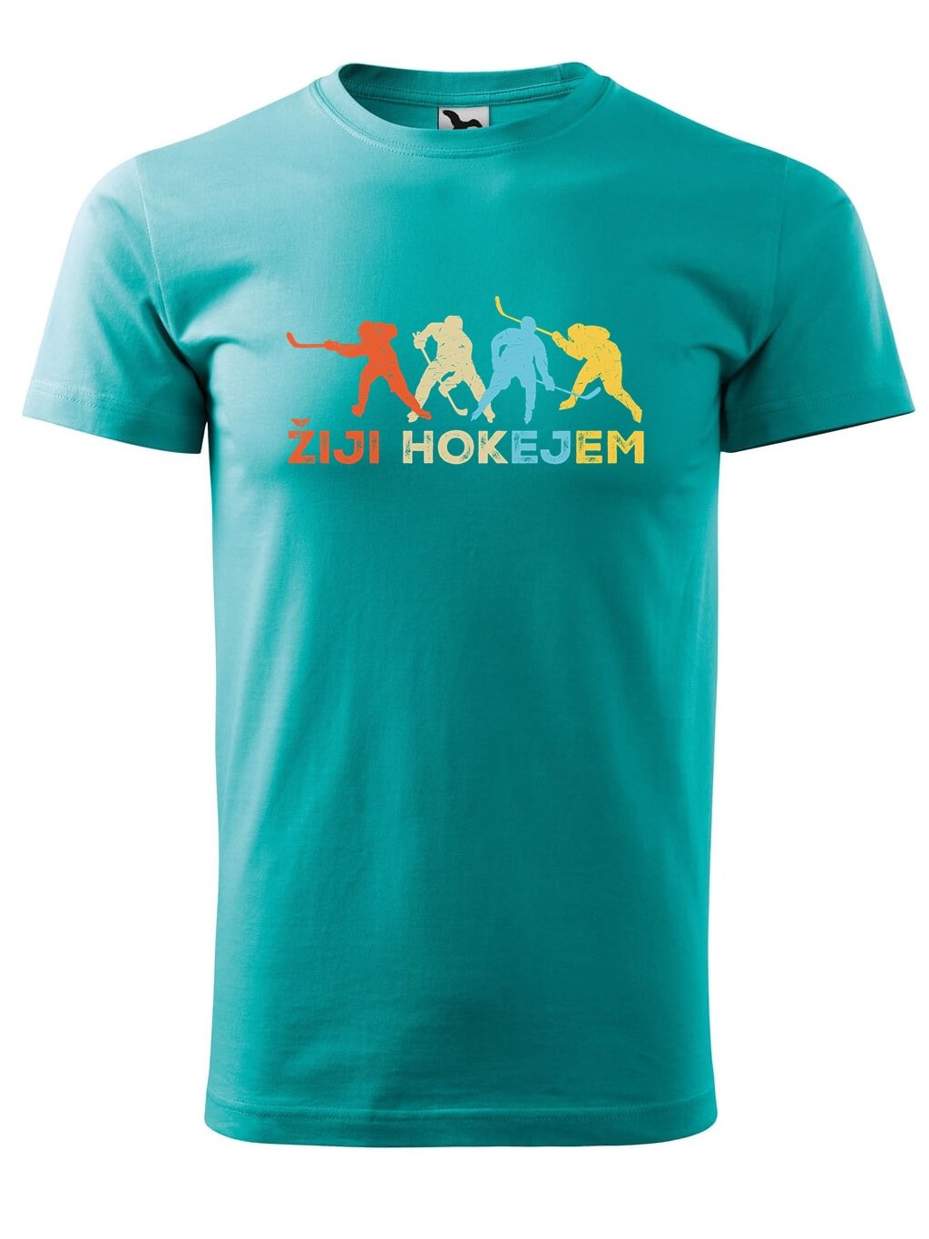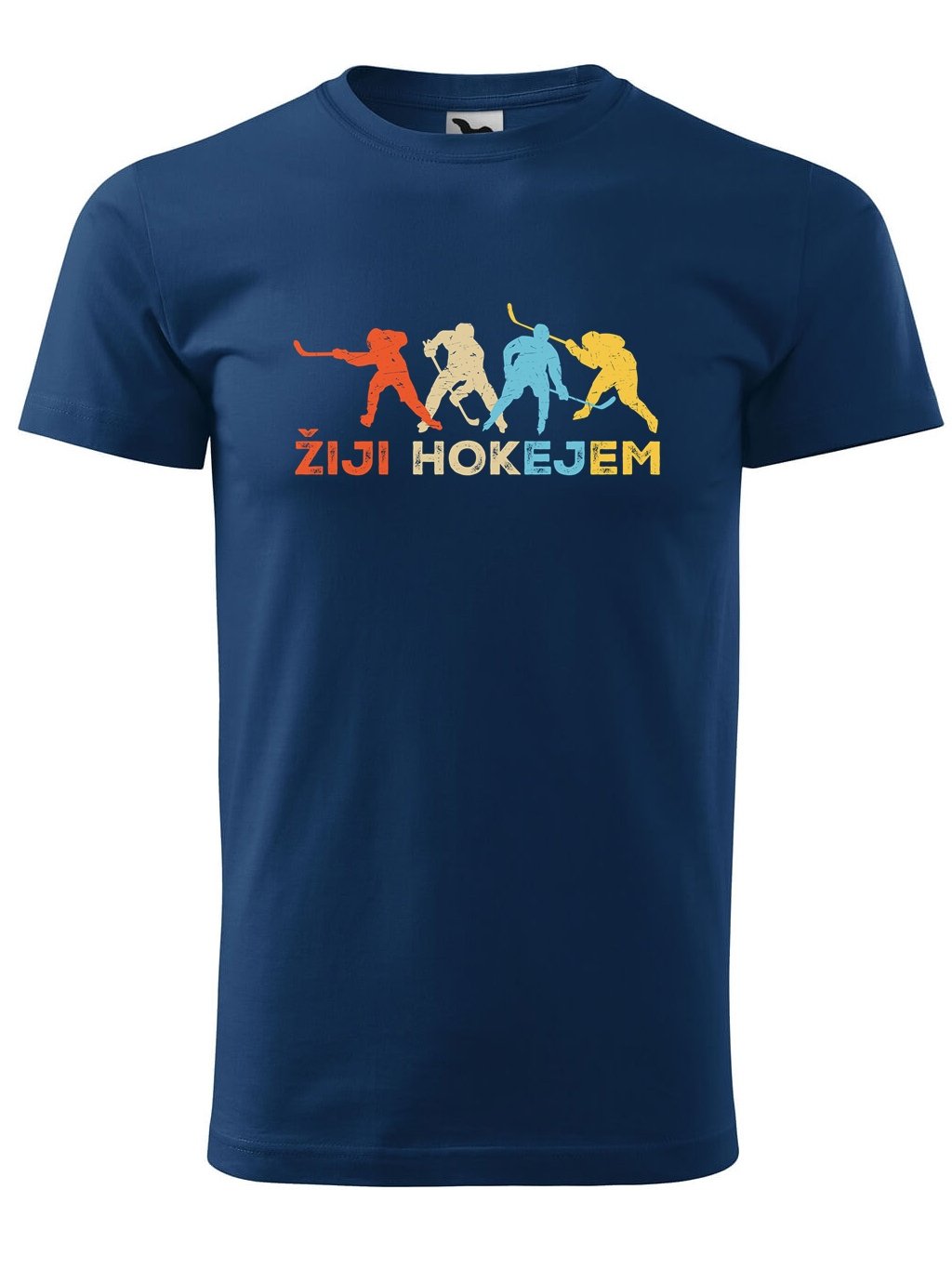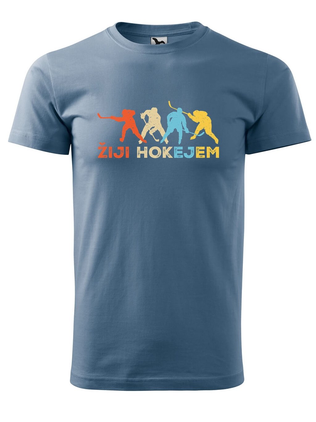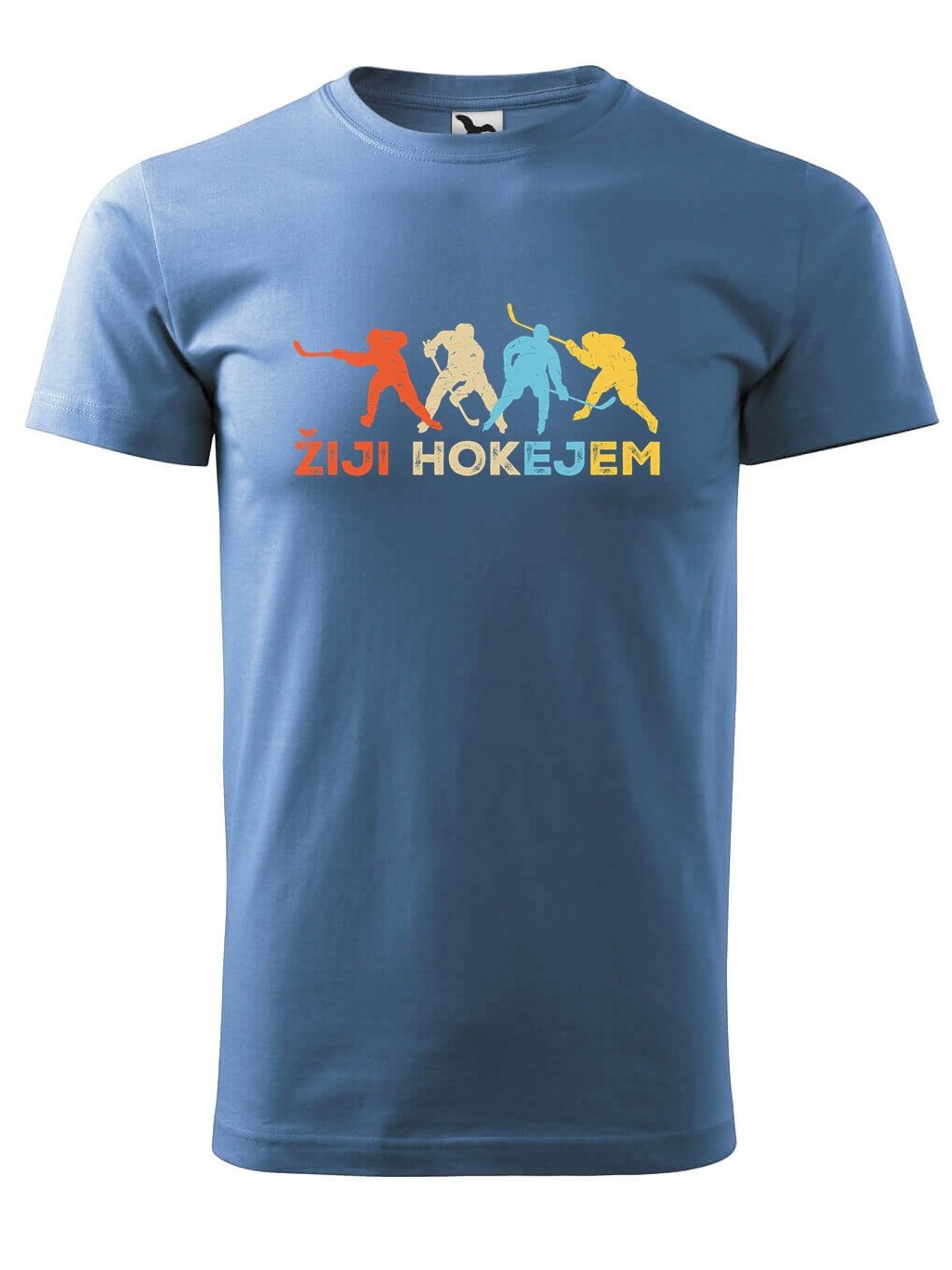 Provedení pánského bavlněného trička s potiskem Žiji hokejem: