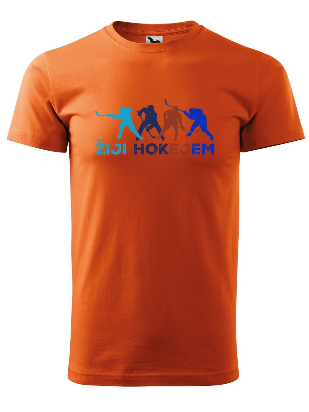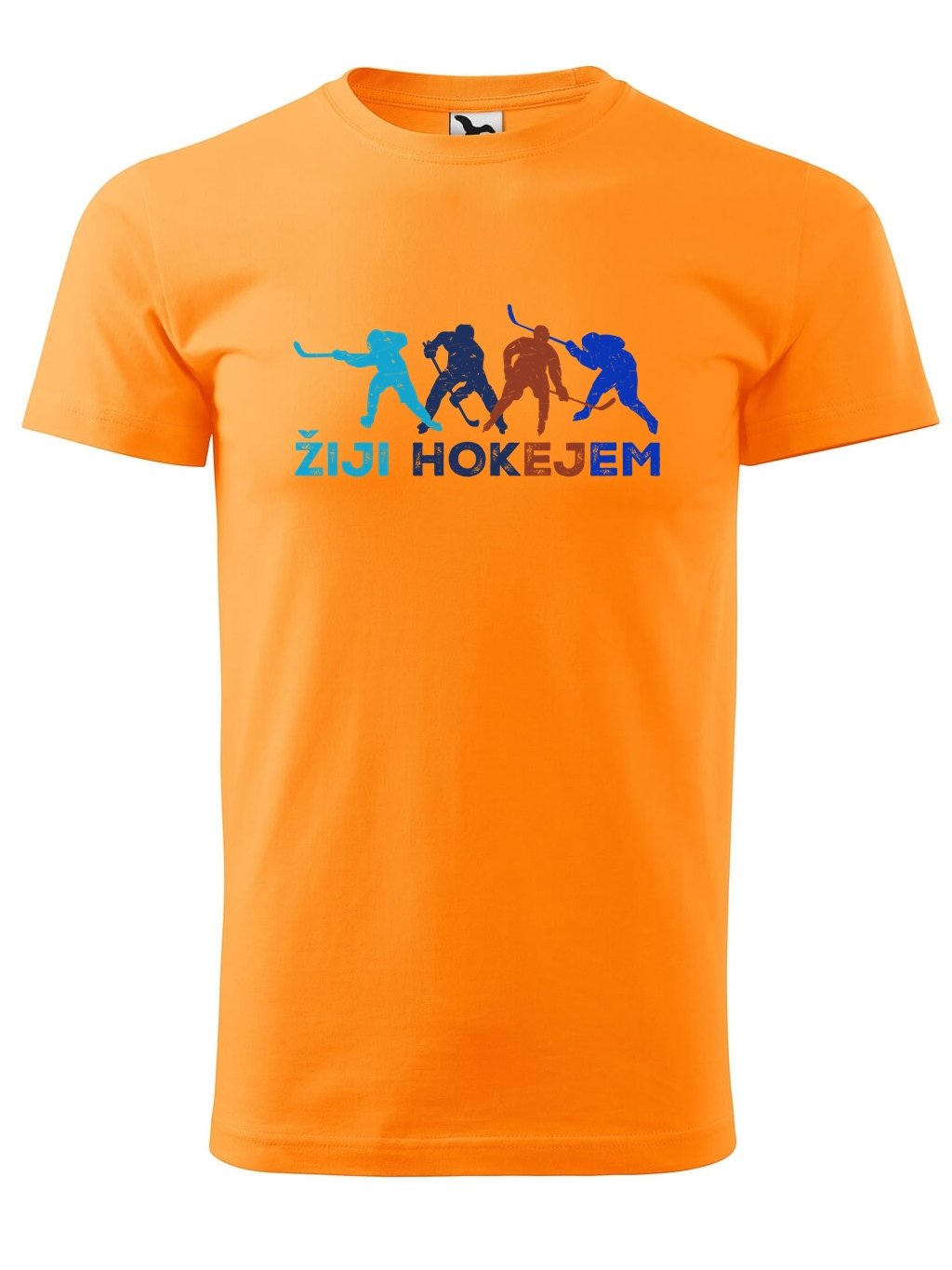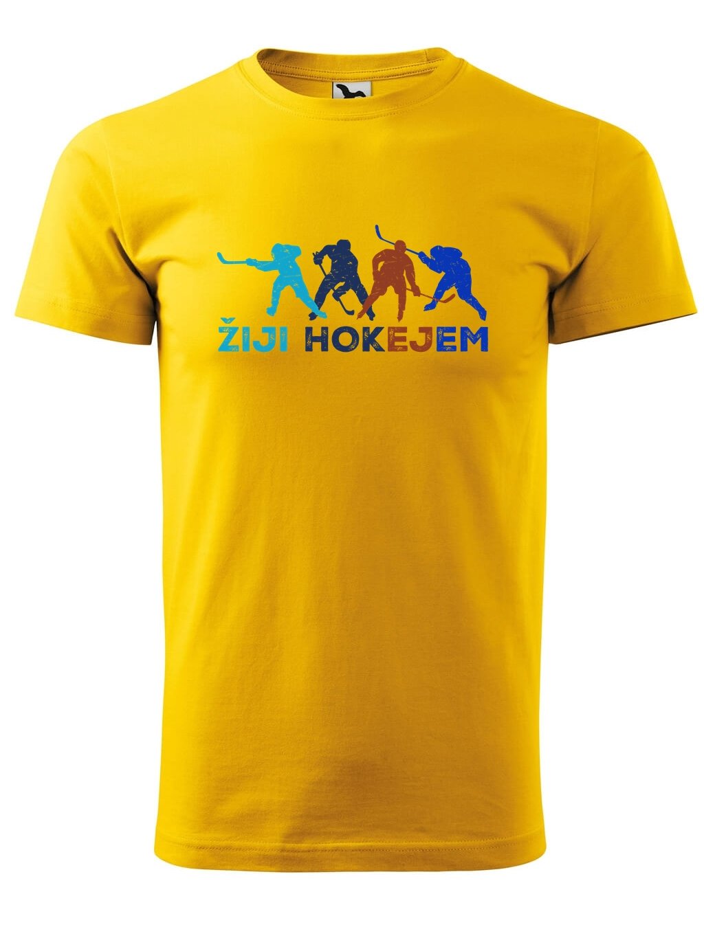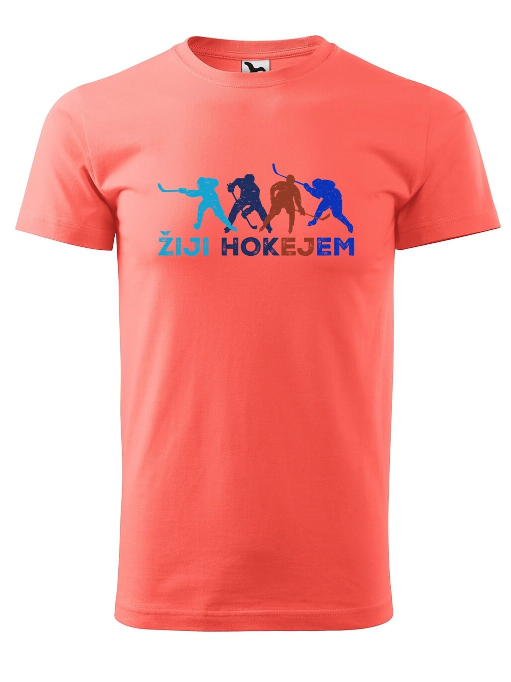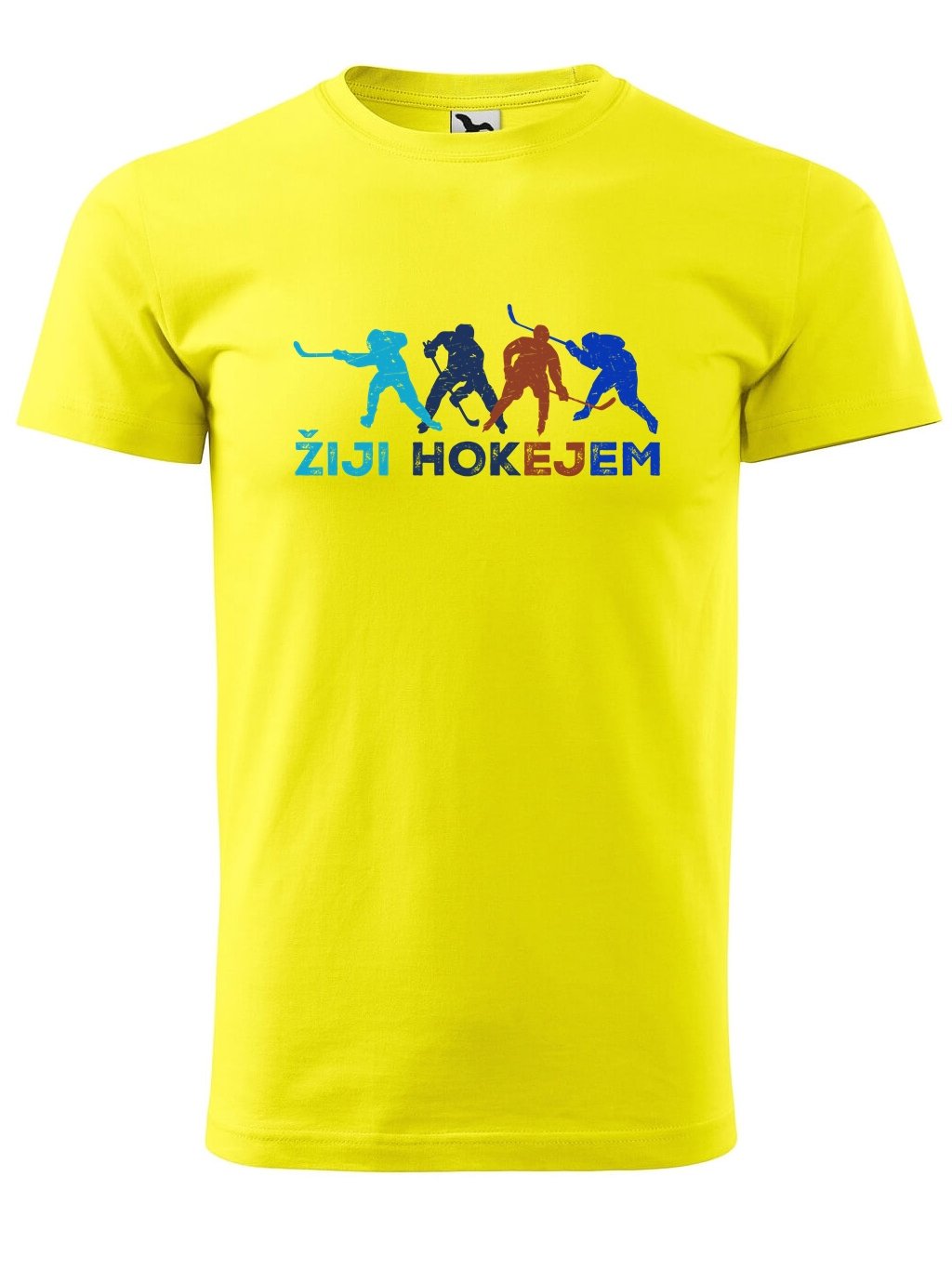 Provedení pánského bavlněného trička s potiskem Žiji hokejem: