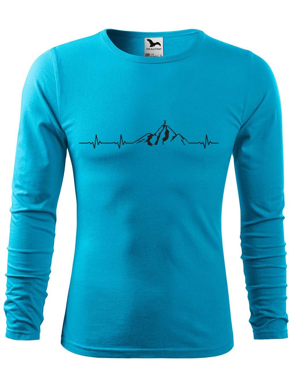 Provedení pánského trička s dlouhým rukávem a potiskem Tep horolezec tyrkysové M: