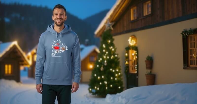 modrá_mikina santa na motorce 800Naše vánoční mikiny pro muže v sobě mísí hned několik zásadních vlastností, které by měla správná mikina mít. Jedna pánské vánoční mikiny jsou neskutečně pohodlné a příjemné na nošení a pro jejich potisk je používán kvalitní materiál, tudíž se mohou pyšnit dlouhou životností. Nemluvě o tom, že jsou taktéž hřejivé, tudíž jsou ideální do studeného zimního počasí. Staňte se hvězdou Vánoc díky elegantní vánoční mikině!