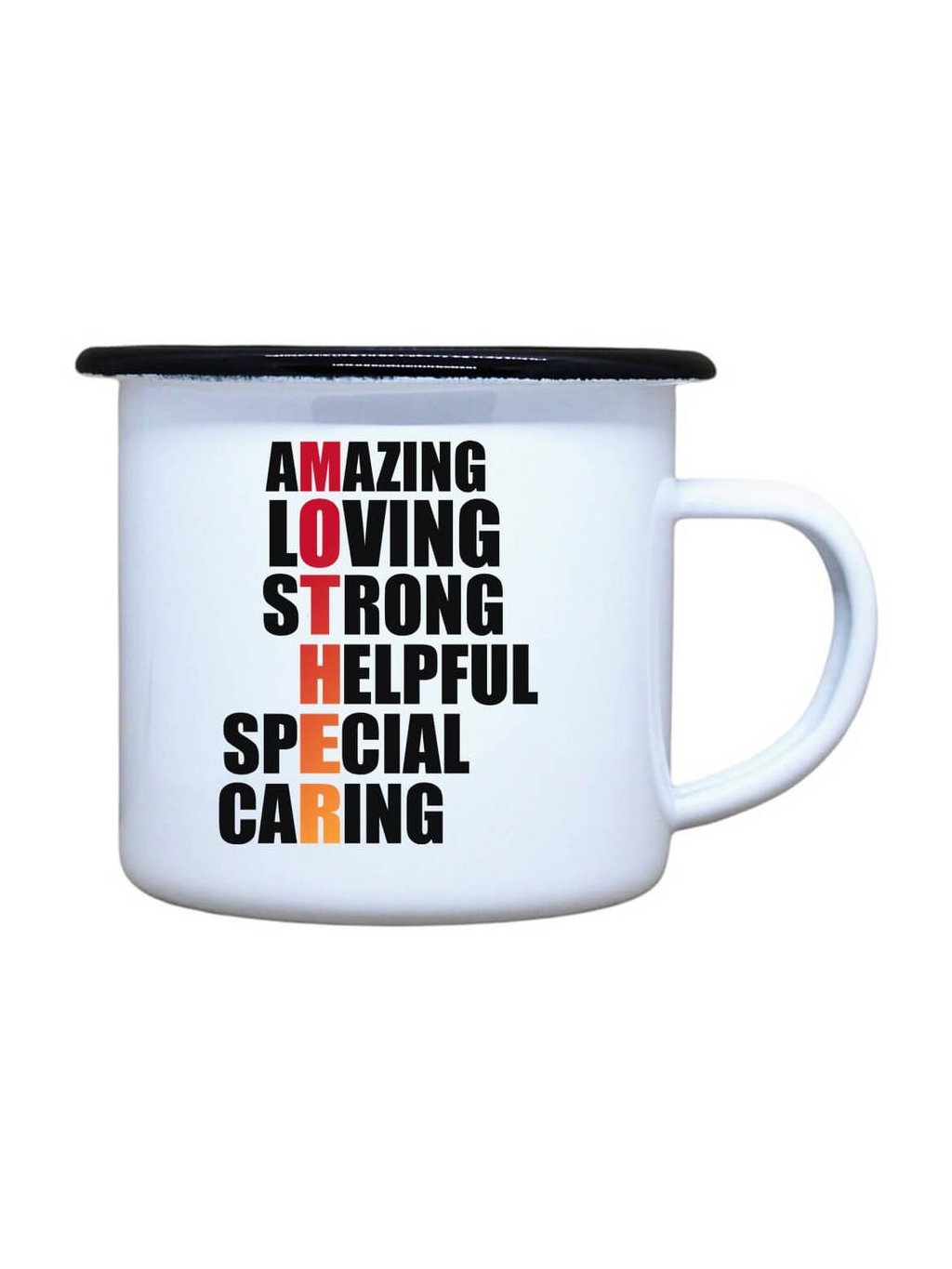 Nostalgický smaltovaný hrnek s černým okrajem z nerezové oceli je ideálním společníkem každé maminky. Stylový plecháček s potiskem je vhodný na Váš čajík, kafíčko nebo třeba i pořádný grog. Neotřelý dárek nejen k svátku, narozeninám, na Vánoce nebo k Valentýnu. Plecháček s potiskem je skvělý parťák na toulky přírodou, ale i na každodenní používání ve Vaší domácnosti. Kvalitní potisk s dlouhou životností.