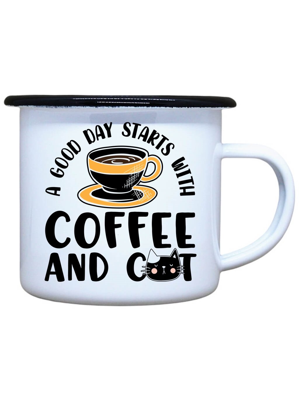 Nostalgický smaltovaný hrnek s černým okrajem z nerezové oceli od Dobrýtriko.cz je ideálním společníkem každé milovnici koček a kávy. Stylový plecháček s potiskem Coffee and cat je vhodný na Váš čajík, kafíčko nebo třeba i pořádný grog. Neotřelý dárek nejen k svátku, narozeninám, na Vánoce nebo k Valentýnu. Plecháček s potiskem Coffee and cat je skvělý parťák na toulky přírodou, ale i na každodenní používání ve Vaší domácnosti. Kvalitní potisk s dlouhou životností.