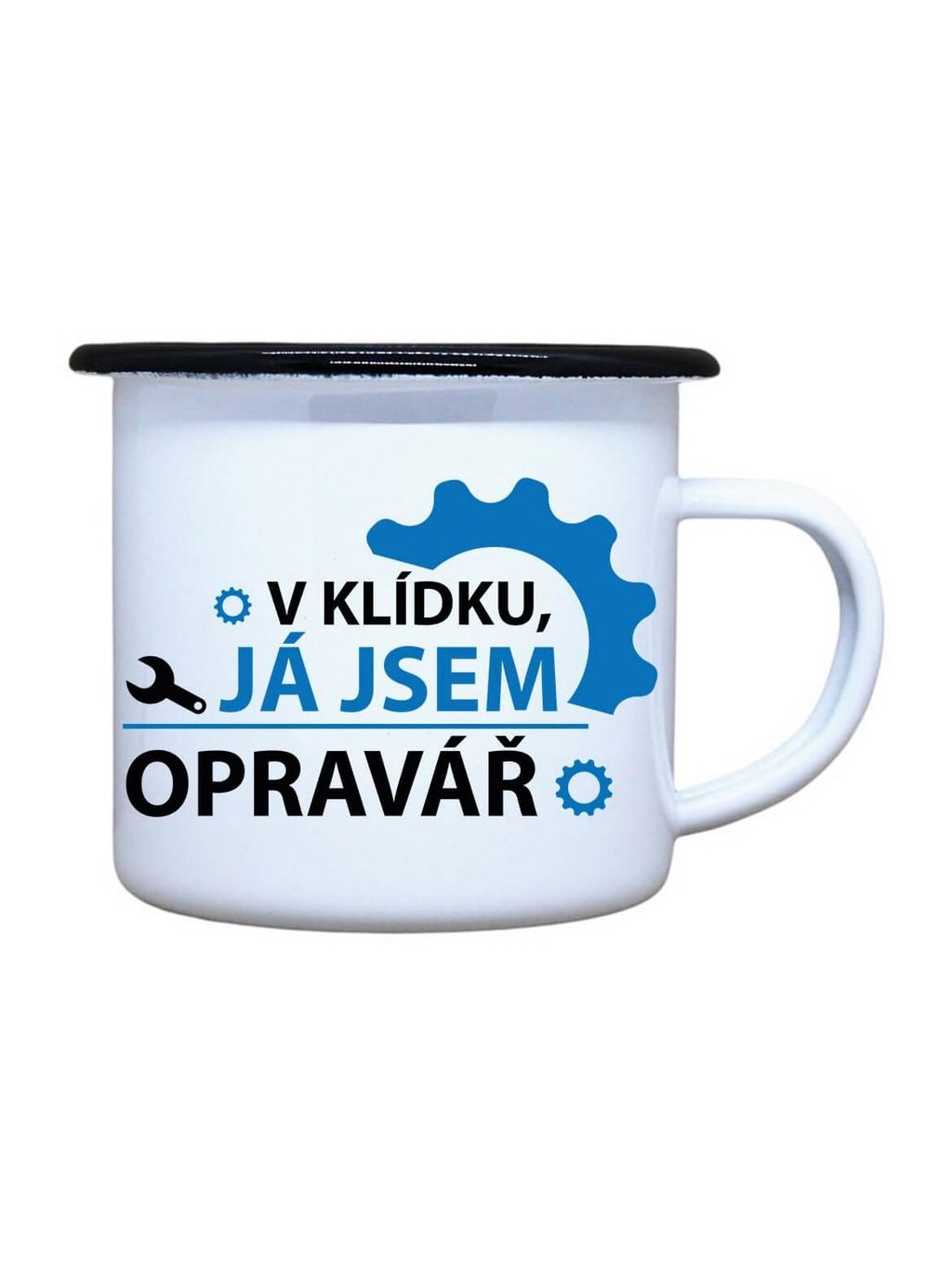 Nostalgický plechový smaltovaný hrnek s černým okrajem a potiskem Jsem opravář, ideální pro Váš čajík, kafíčko, kakao, ale třeba i na pořádný grog ve dvou oblíbených velikostech. Plecháček je skvělý parťák na toulky přírodou, ale i na každodenní používání ve Vaší domácnosti. Neotřelý dárek pro Vaše blízké.