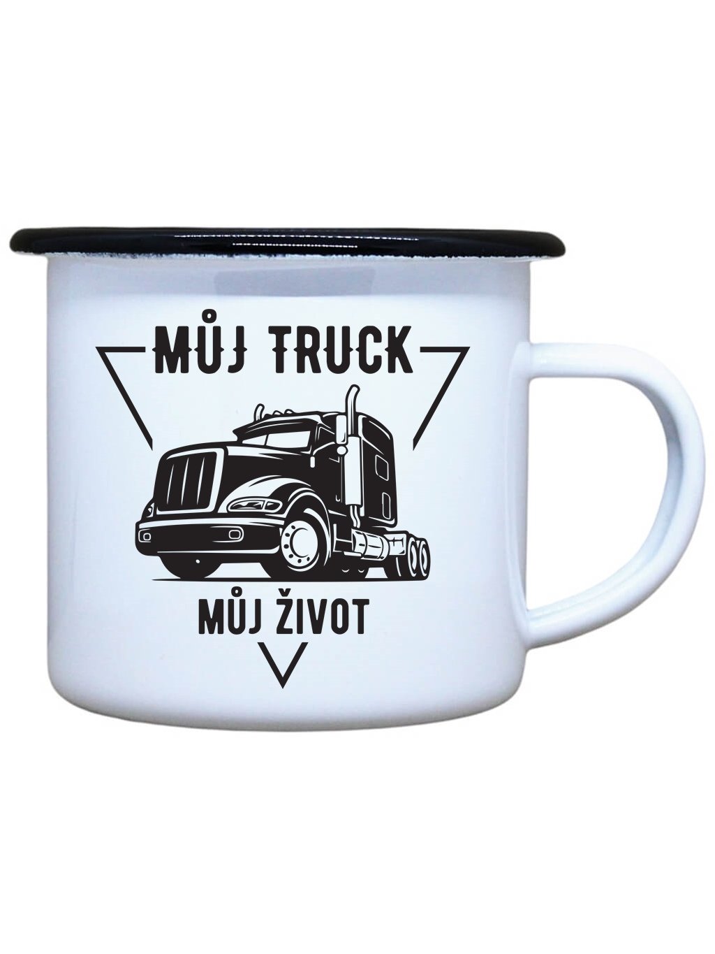 Nostalgický plechový smaltovaný hrnek s černým okrajem a potiskem Můj truck můj život, ideální pro Váš čajík, kafíčko, kakao, ale třeba i na pořádný grog ve dvou oblíbených velikostech. Plecháček je skvělý parťák na toulky přírodou, ale i na každodenní používání ve Vaší domácnosti. Neotřelý dárek pro Vaše blízké.