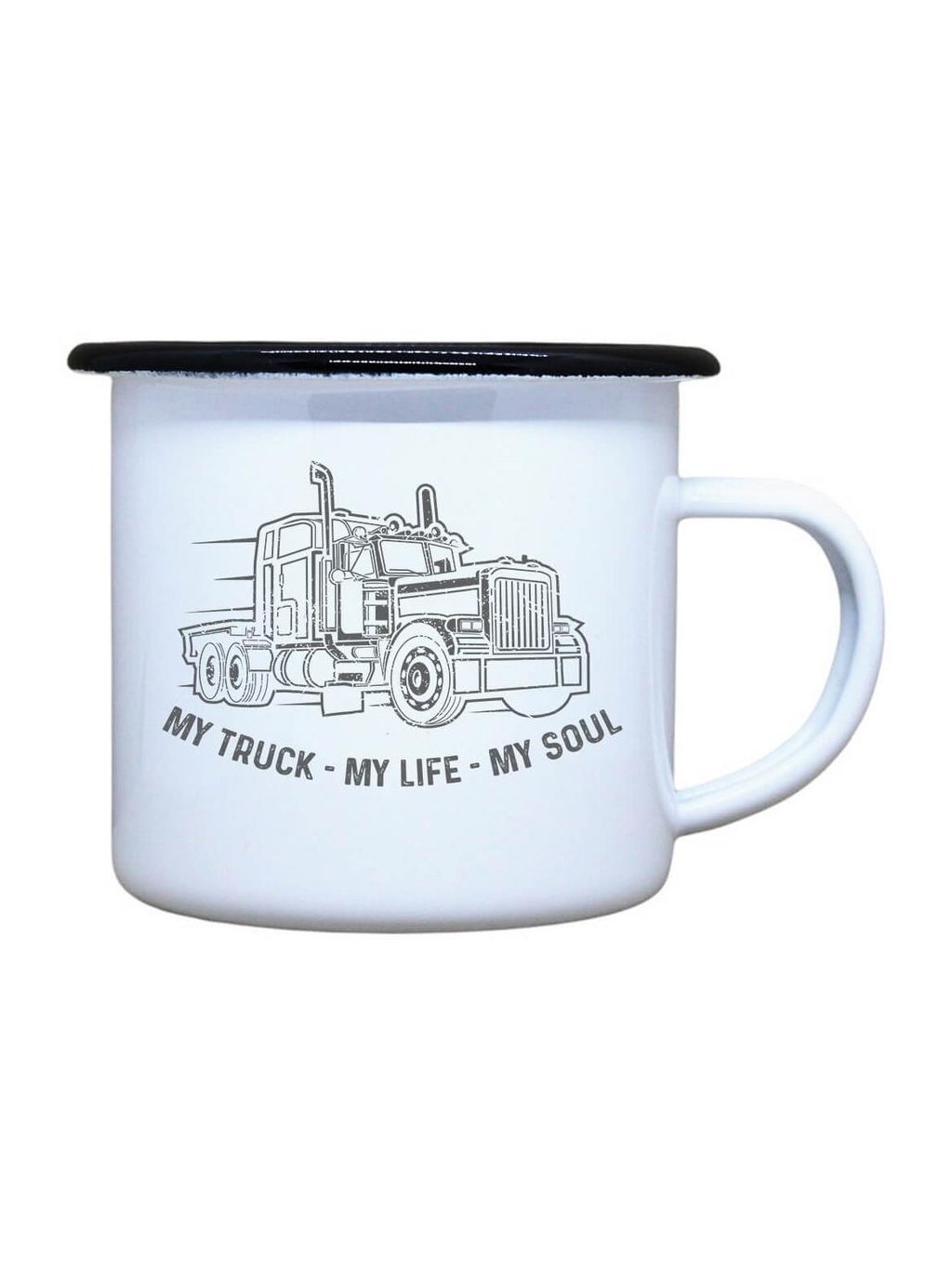 Nostalgický plechový smaltovaný hrnek s černým okrajem, ideální pro Váš čajík, kafíčko, kakao, ale třeba i na pořádný grog ve dvou oblíbených velikostech. Plecháček My truck je skvělý parťák za volant, ale i na každodenní používání ve Vaší domácnosti. Neotřelý dárek pro Vaše blízké.