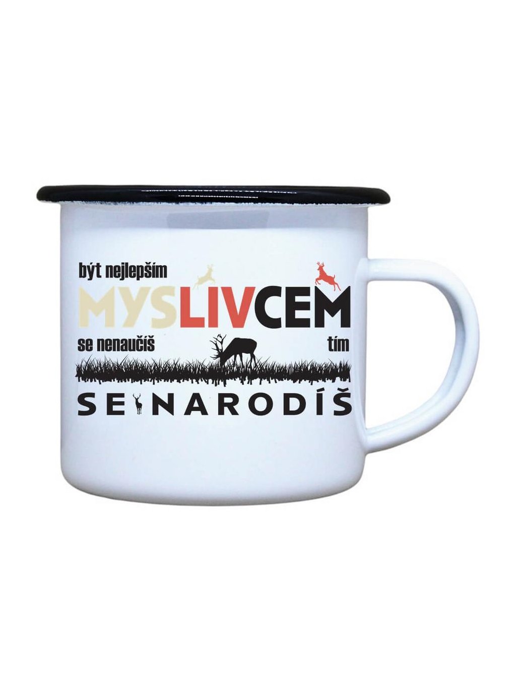 Nostalgický plechový smaltovaný hrnek s černým okrajem a potiskem Myslivcem se narodíš, ideální pro Váš čajík, kafíčko, kakao, ale třeba i na pořádný grog ve dvou oblíbených velikostech. Plecháček je skvělý parťák na toulky přírodou, ale i na každodenní používání ve Vaší domácnosti. Neotřelý dárek pro Vaše blízké.