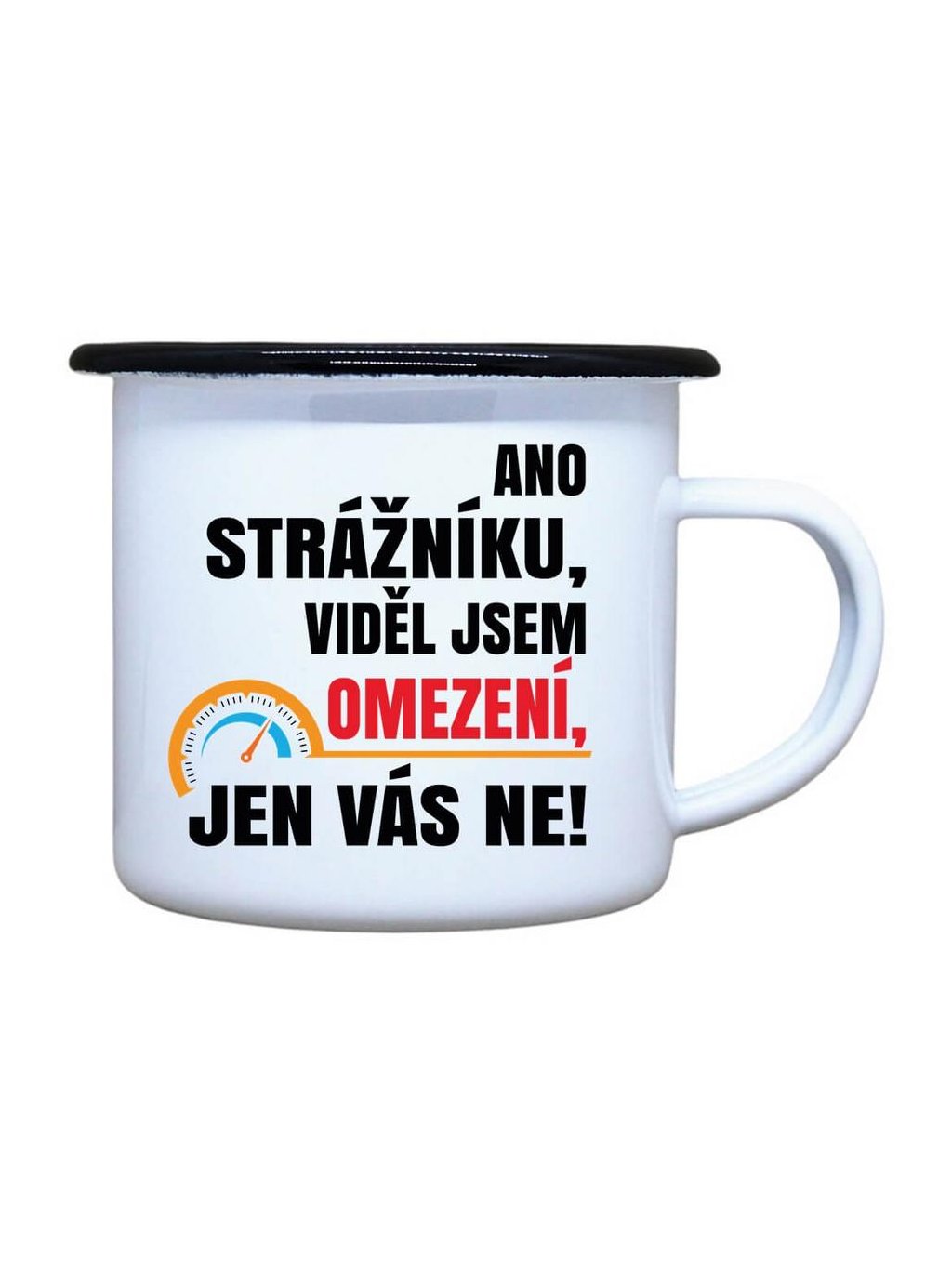 Nostalgický smaltovaný hrnek s černým okrajem z nerezové oceli od Dobrýtriko.cz je ideálním společníkem každého řidiče. Stylový plecháček s potiskem Omezení je vhodný na Váš čajík, kafíčko nebo třeba i pořádný grog. Neotřelý dárek nejen k svátku, narozeninám, na Vánoce nebo k Valentýnu. Plecháček s potiskem Omezení je skvělý parťák na toulky přírodou, ale i na každodenní používání ve Vaší domácnosti. Kvalitní potisk s dlouhou životností.