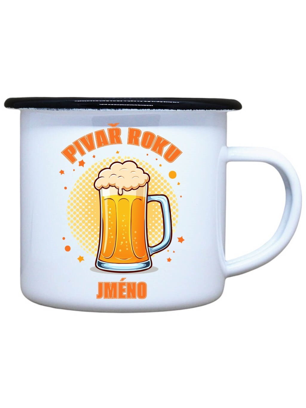 Nostalgický smaltovaný hrnek s černým okrajem z nerezové oceli od Dobrýtriko.cz je ideálním společníkem každé pivaře. Stylový plecháček s potiskem Pivař roku je vhodný na Váš čajík, kafíčko nebo třeba i pořádný grog. Neotřelý dárek nejen k svátku, narozeninám, na Vánoce nebo k Valentýnu. Plecháček s potiskem Pivař roku je skvělý parťák na toulky přírodou, ale i na každodenní používání ve Vaší domácnosti. Kvalitní potisk s dlouhou životností.