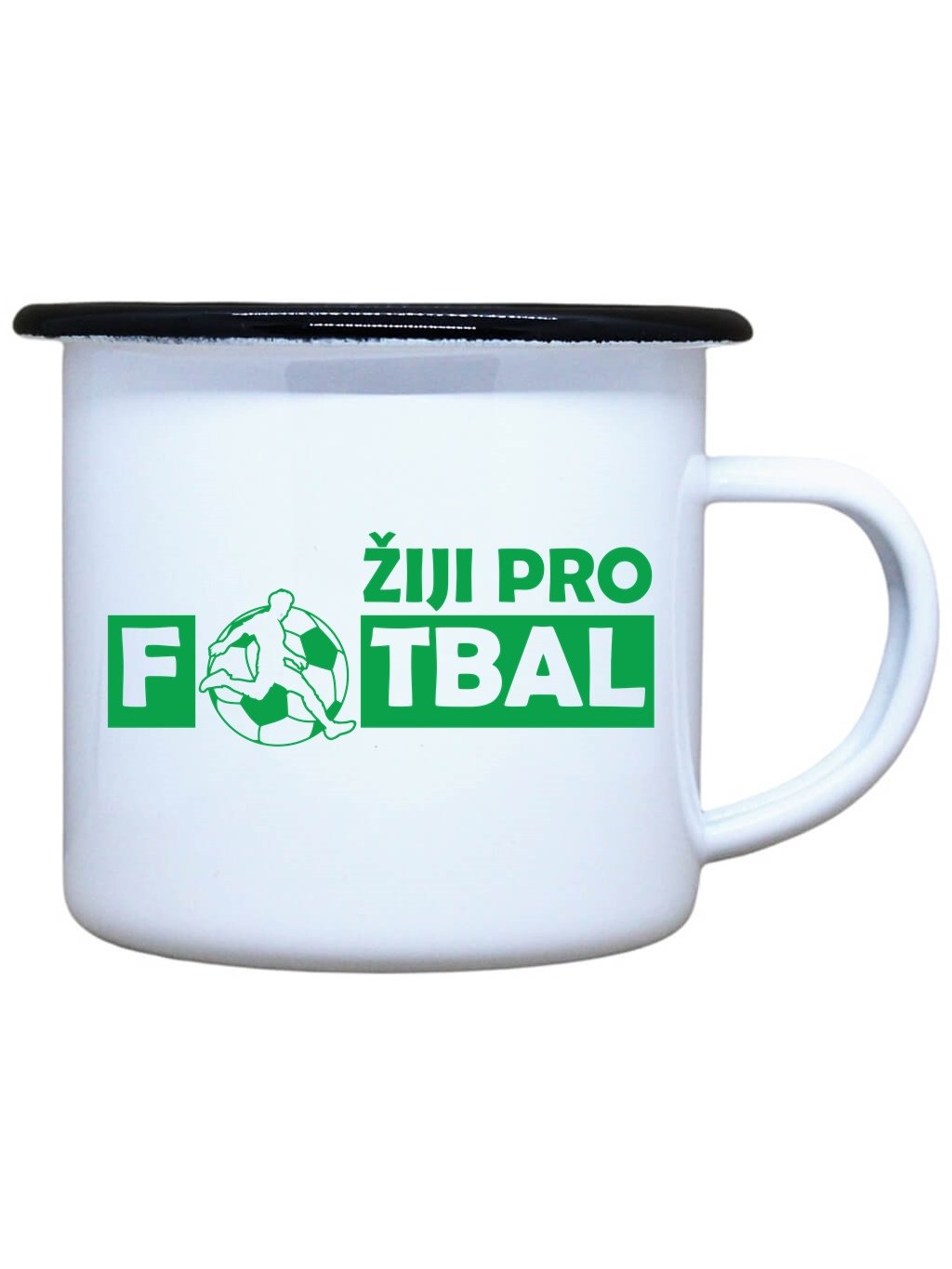 Nostalgický plechový smaltovaný hrnek s černým okrajem a potiskem Žiji pro fotbal, ideální pro Váš čajík, kafíčko, kakao, ale třeba i na pořádný grog ve dvou oblíbených velikostech. Plecháček je skvělý parťák na toulky přírodou, ale i na každodenní používání ve Vaší domácnosti. Neotřelý dárek pro Vaše blízké.