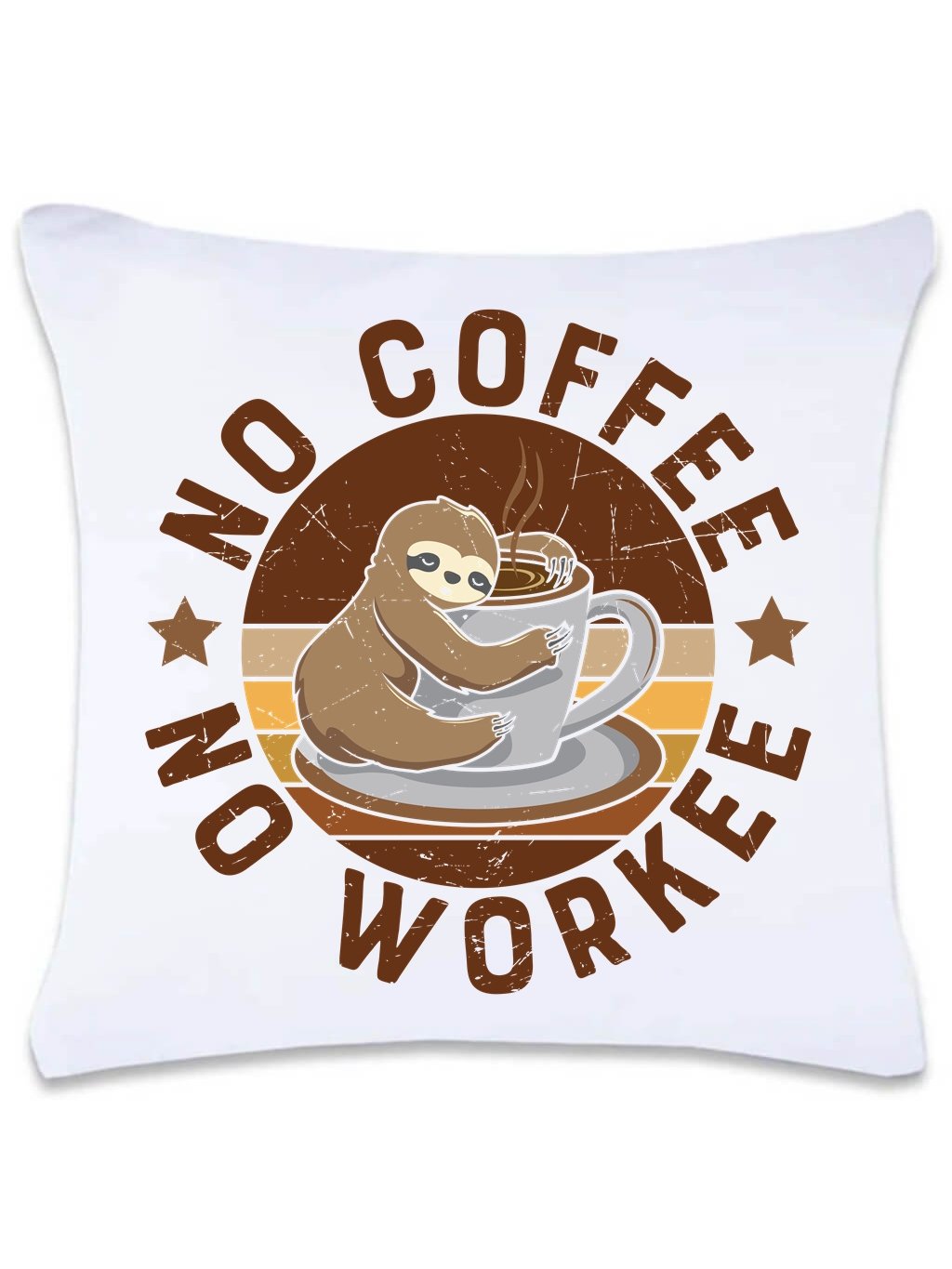 Provedení dekoračního polštářku s potiskem No coffee no workee: