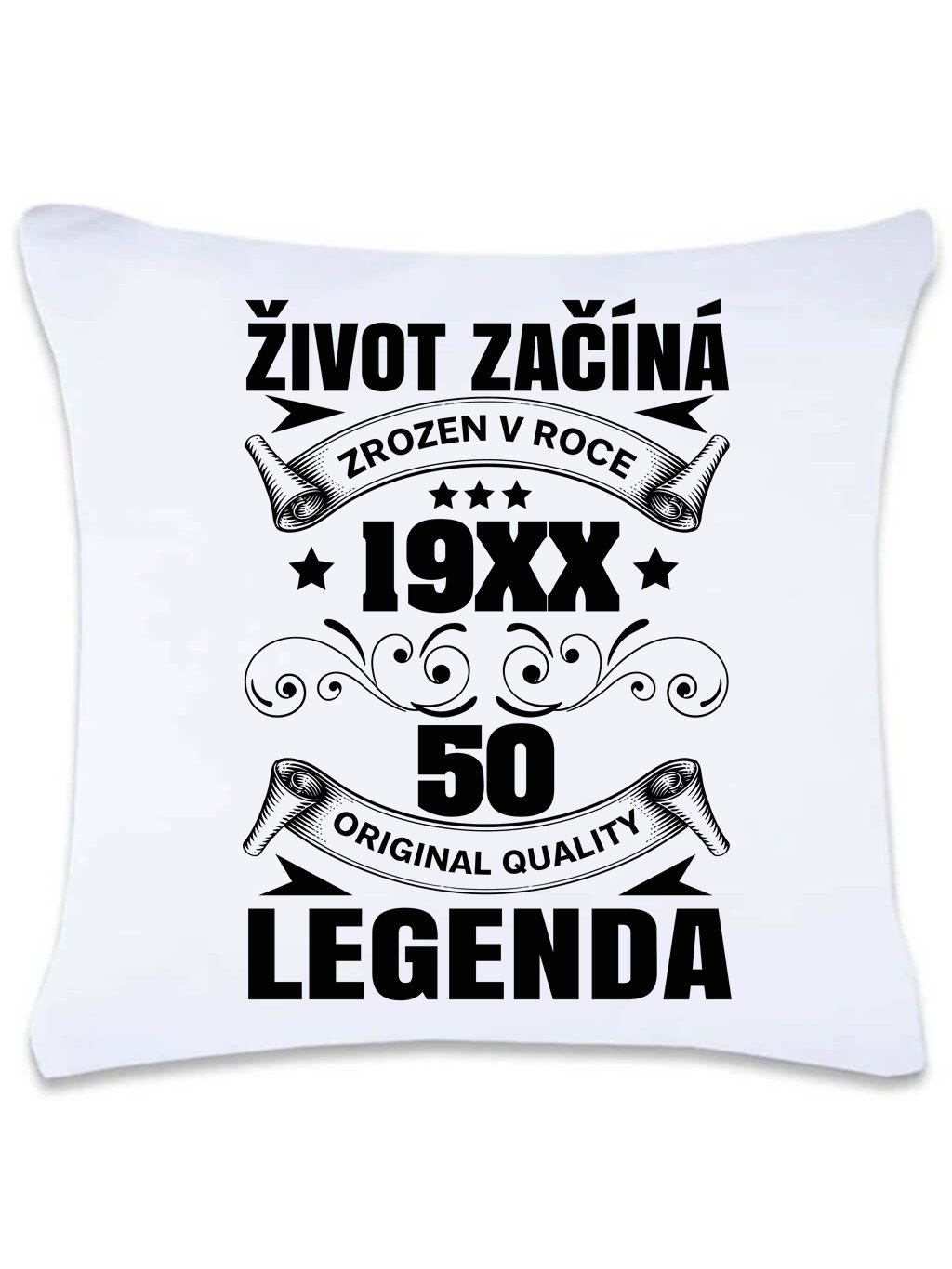Provedení dekoračního polštářku s potiskem Život začíná 50: