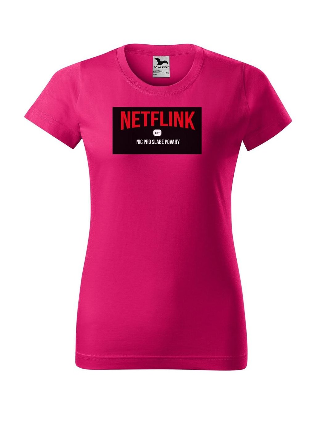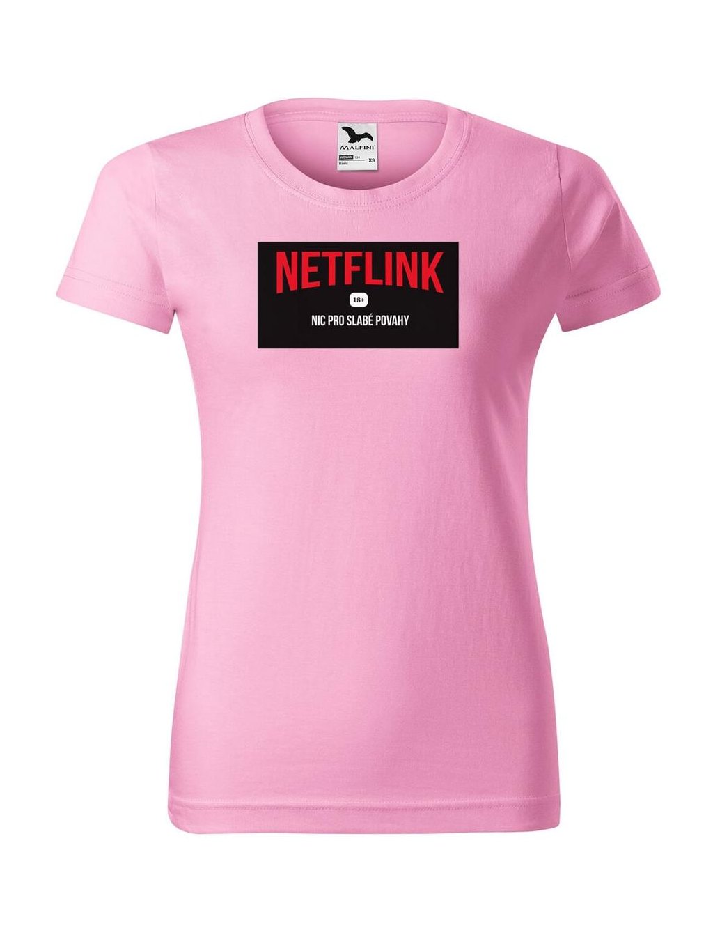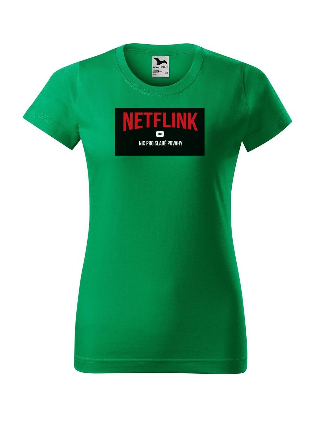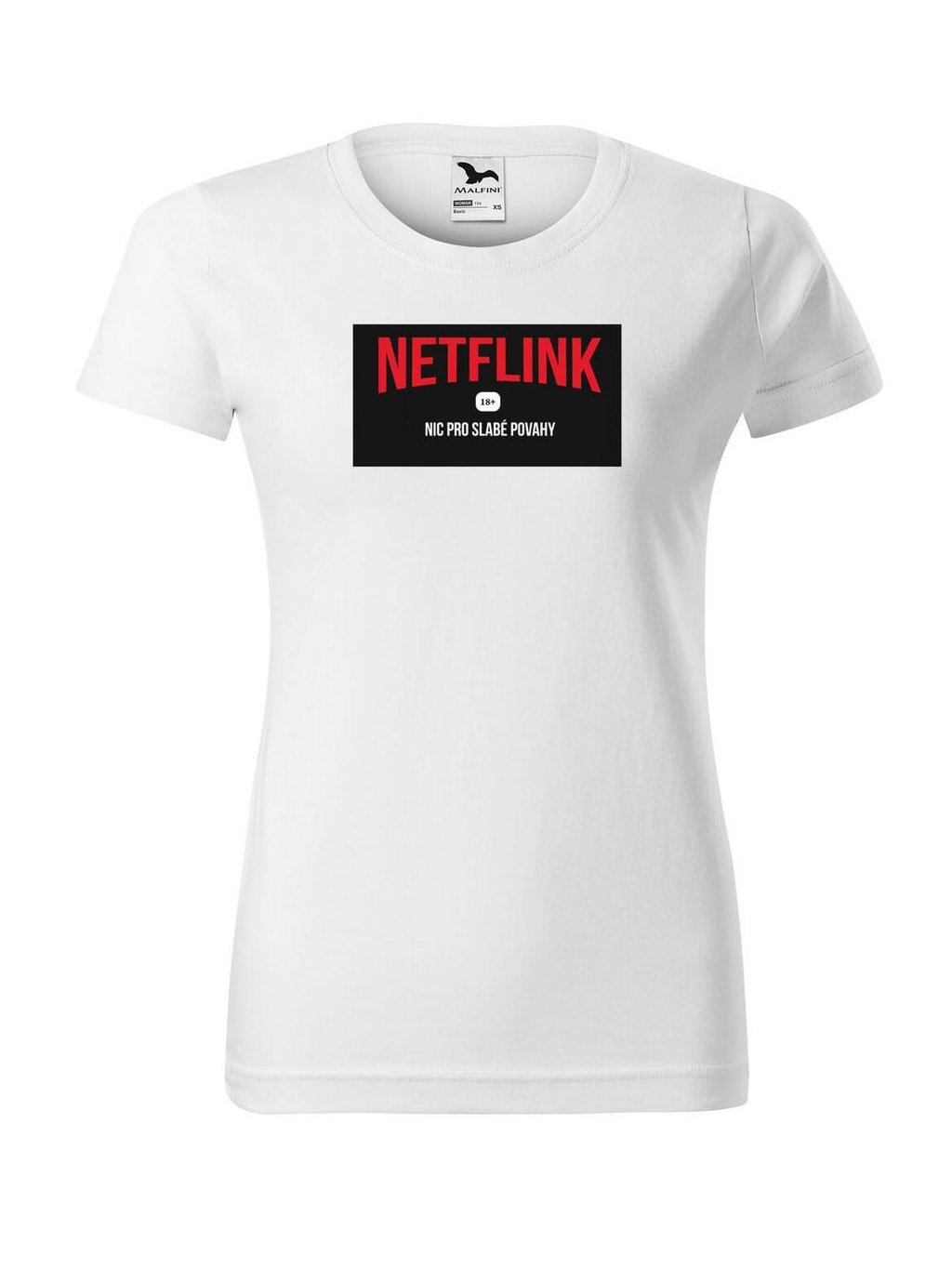 Vtipné dámské tričko s potiskem NETFLINK je originálním dárkem pro vaše blízké. Precizně zpracované dámské tričko s potiskem od Dobrý triko udělá radost nejen k narozeninám nebo svátku.